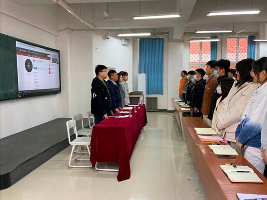 为深入学习习近平新时代中国特色社会主义思想和党的二十大精神,扎实推进青年马克思主义者培养工程,提高青年学生的理论素养和实践水平,培养勇于担当大任的新时代青年。aa3044永利集团于2023年3月20日12:15在主教1-1和1-2教室举行第三期“踔厉奋发,笃行不怠”青马培训班开班仪式。参会人员有学院党总支书记兼学管副院长尹钧,团总支书记王珊,招生就业办公室主任孟鑫,团总支学生副书记段鹏飞、青马管理中心主任刘宇轩以及全体青马培训班学员。