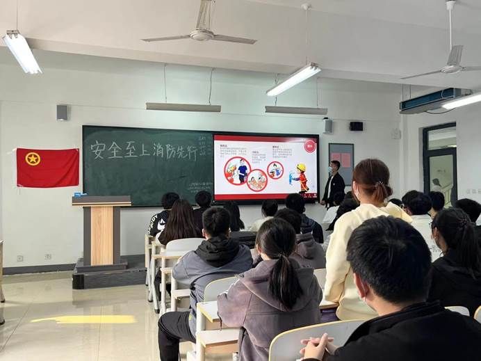 此次班会由各班团支书主持并主讲,各班委辅助进行。首先,由各班团支书阐述有关消防安全事故案例背后所隐藏的安全隐患,学生深刻意识到学习并正确运用消防安全知识在危急关头对保障生命安全的重要性;紧接着学生回顾思考曾经学过的消防安全知识并交流学习,运用这些知识探讨如何预防校园中存在的安全隐患;之后,各班团支书带领学生认识安全标识并正确使用消防器材,掌握预防安全事故与发生灾情时的逃离和自救本领;最后,通过观看消防影片,学生明白消防安全事业的不易,并向在消防一线消防员们致敬。