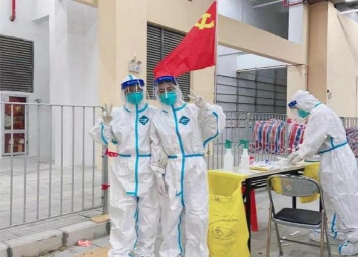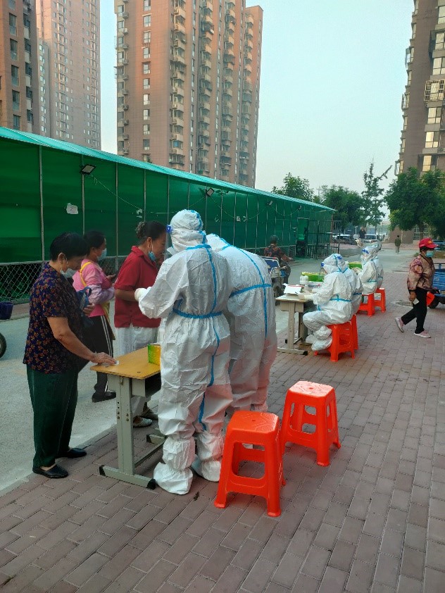 学生耿晓瑞进行核酸检测工作