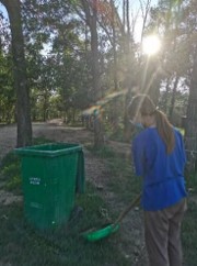 学生李银辉进行环境清洁、秩序引导工作