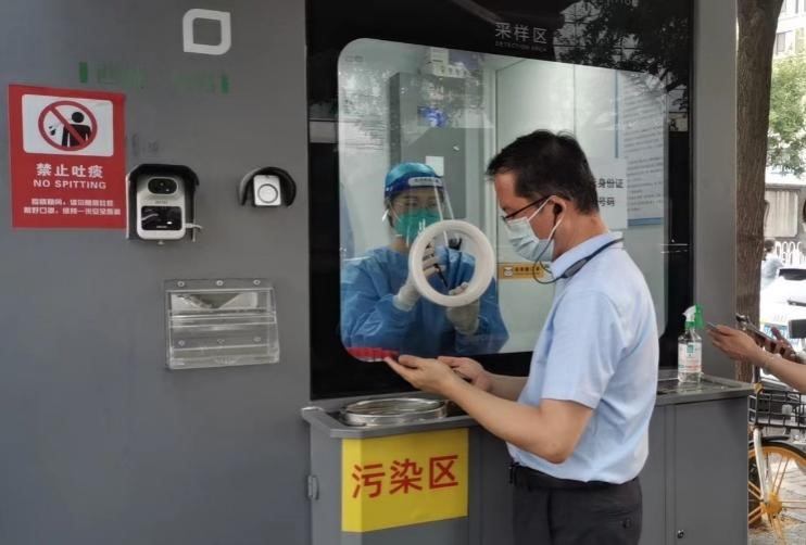 学生冯宁进行核酸检测工作