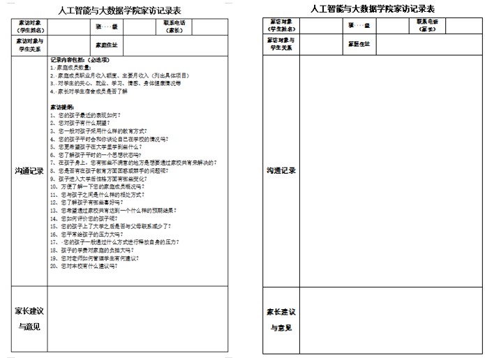 学院建立“一生一册家访信息台账”,将电话家访了解到的信息(学生的家庭状况、成长环境、在家表现等)除了在家访登记表上记录之前,在该台账上记录,以便后续跟踪持续记录学生的基本情况。