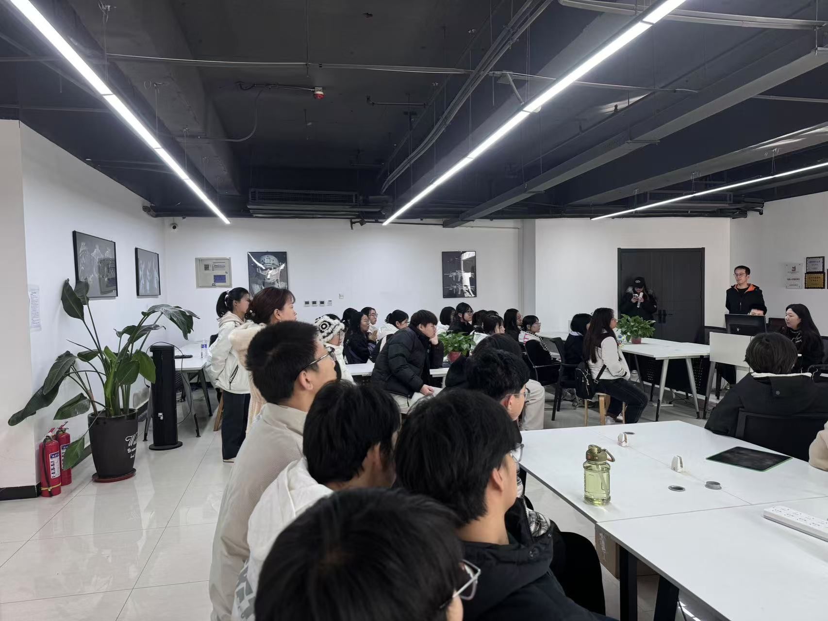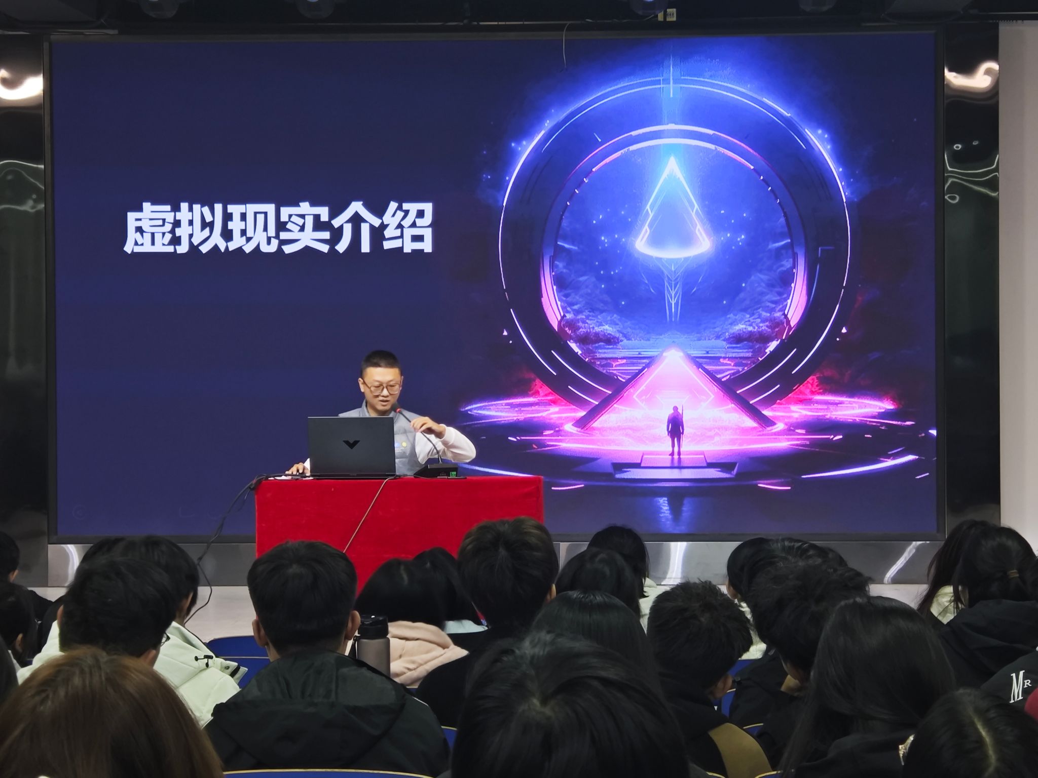 参观企业后,师生们在我校教4楼参加了讲座。企业教师张世民向同学们讲解了虚拟现实技术在教育和培训方向的应用,该技术可用于模拟各种难以直接观察或体验的场景。Unity高级讲师薛涛从游戏方向向同学们介绍了相关专业知识,某些大型的角色扮演游戏、射击游戏等通过虚拟现实技术可以让玩家置身于真实的游戏场景中进行战斗、冒险等活动,同学们利用虚拟现实设备,可以更加直观地学习和理解相关知识,提高学习兴趣。讲座完成后张老师和薛老师针对同学们提出的问题一一进行了解答。