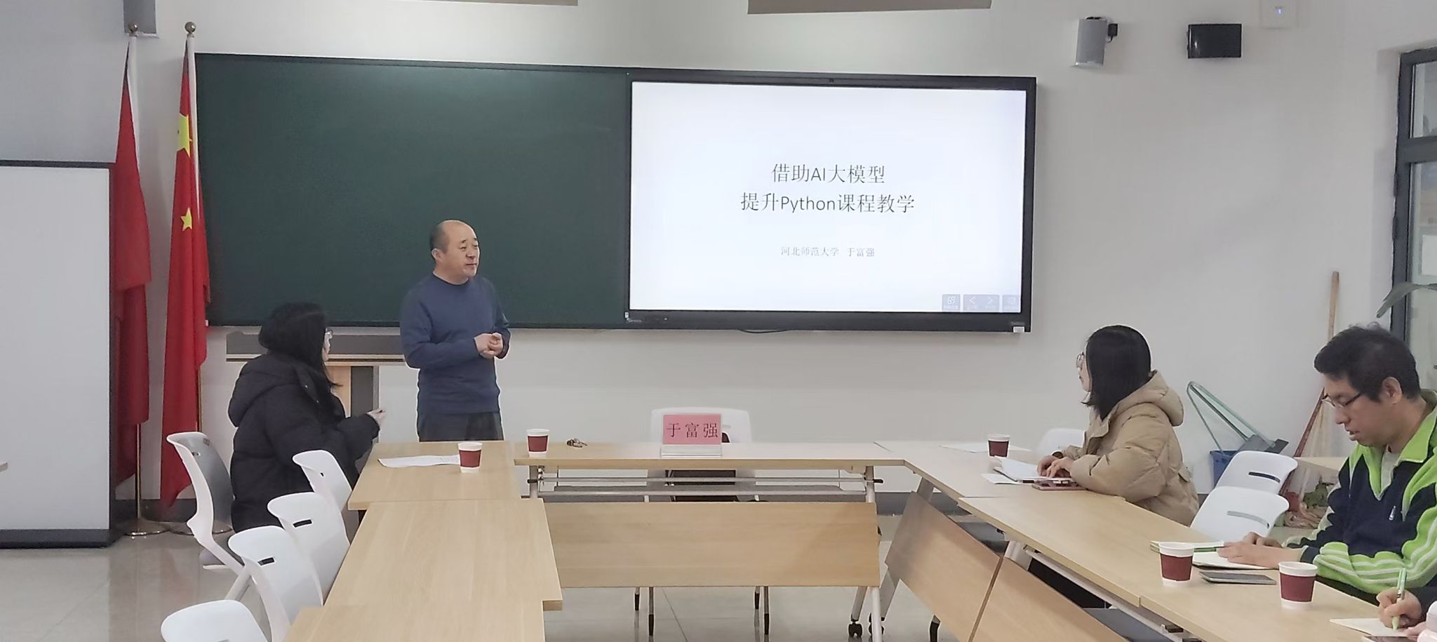 2024年12月19日上午9:00aa3044永利集团在次教216会议室举行了《借助AI提升Python课程教学》主题讲座,aa3044永利集团教学副院长林海霞、教学副院长孙劼、系主任及讲授Python课程相关老师参加。讲座由智能科学与技术系主任崔建弘主持。系主任崔建弘致欢迎词,对于富强教授的到来表示热烈欢迎,并对现场教师们强调,要珍惜机会,认真聆听;要积极参与,互动交流;要学以致用,推动Python教学工作稳步发展。