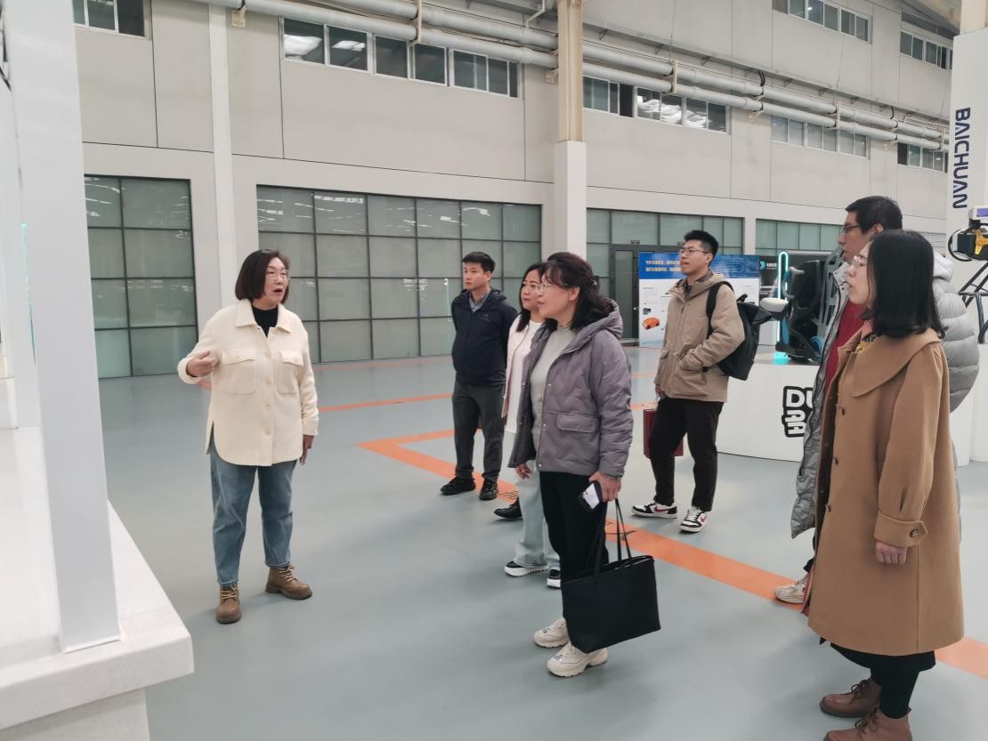 在百川机器人共享智能制造车间,调研团队实地参观了自动化生产线。车间内,机器人手臂精准作业,自动引导车(AGV)高效穿梭,展现了智能化生产的无缝衔接场景。通过专家介绍,共享工厂通过设备、技术、人才等资源的开放共享,已为130余家中小企业提供非标零部件研发及加工服务,年产值超1亿元,助力企业生产效率提升10%以上、产品研制周期缩短15%。