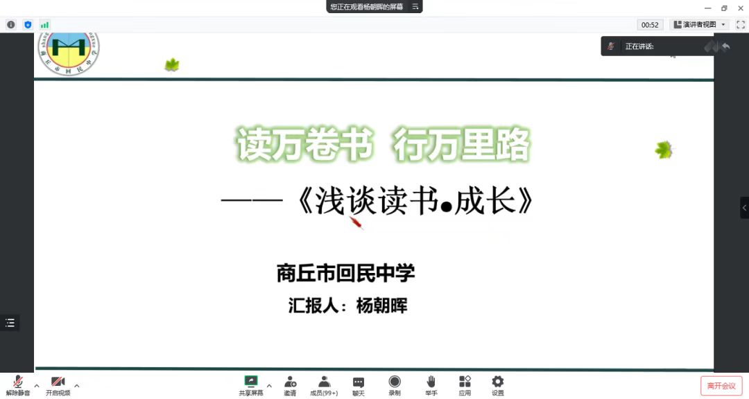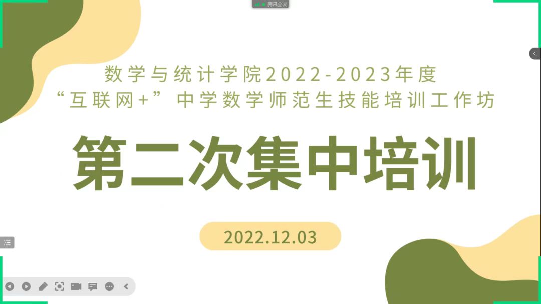 为进一步提升师范生的教学技能,全面提高师范生的专业素养,beat365英国官网网站于12月3日晚七点在腾讯会议上开展了“互联网+”中学数学师范生技能培训工作坊第二次集中培训——浅谈读书·成长专题讲座。此次培训由商丘市回民中学杨朝晖老师主讲,中学数学工作坊11位坊主,beat365英国官网网站院长张斐然、副院长刘磊、2020级辅导员姜素华以及2020级111位师范生参加了此次集中培训。