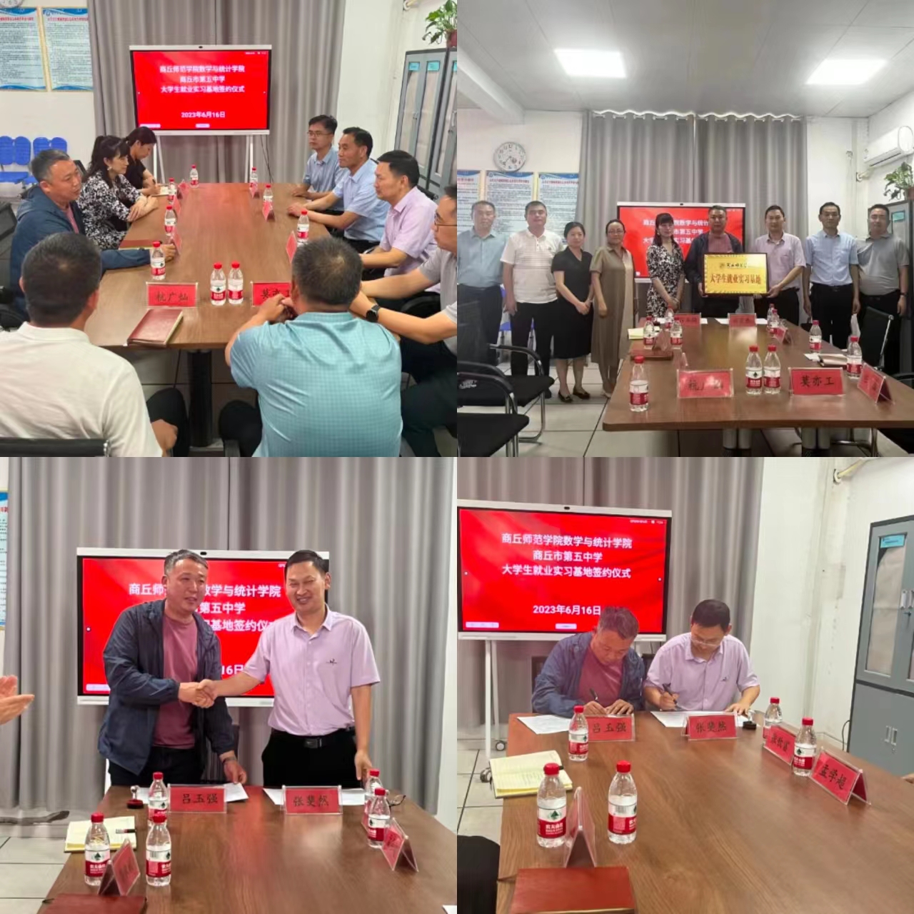 6月16日,beat365英国官网网站党委书记孟学超、院长张斐然、实验中心主任任磊、党政办公室主任张钦富到商丘市第五中学、第十七中学开展访企拓岗促就业活动,商丘市第五中学校长吕玉强、副校长马秋颖、杨蔚华、袁伟、杭广灿,工会主席莫亦工和商丘市第十七中学校领导杜忠臣、隋文学等出席活动。