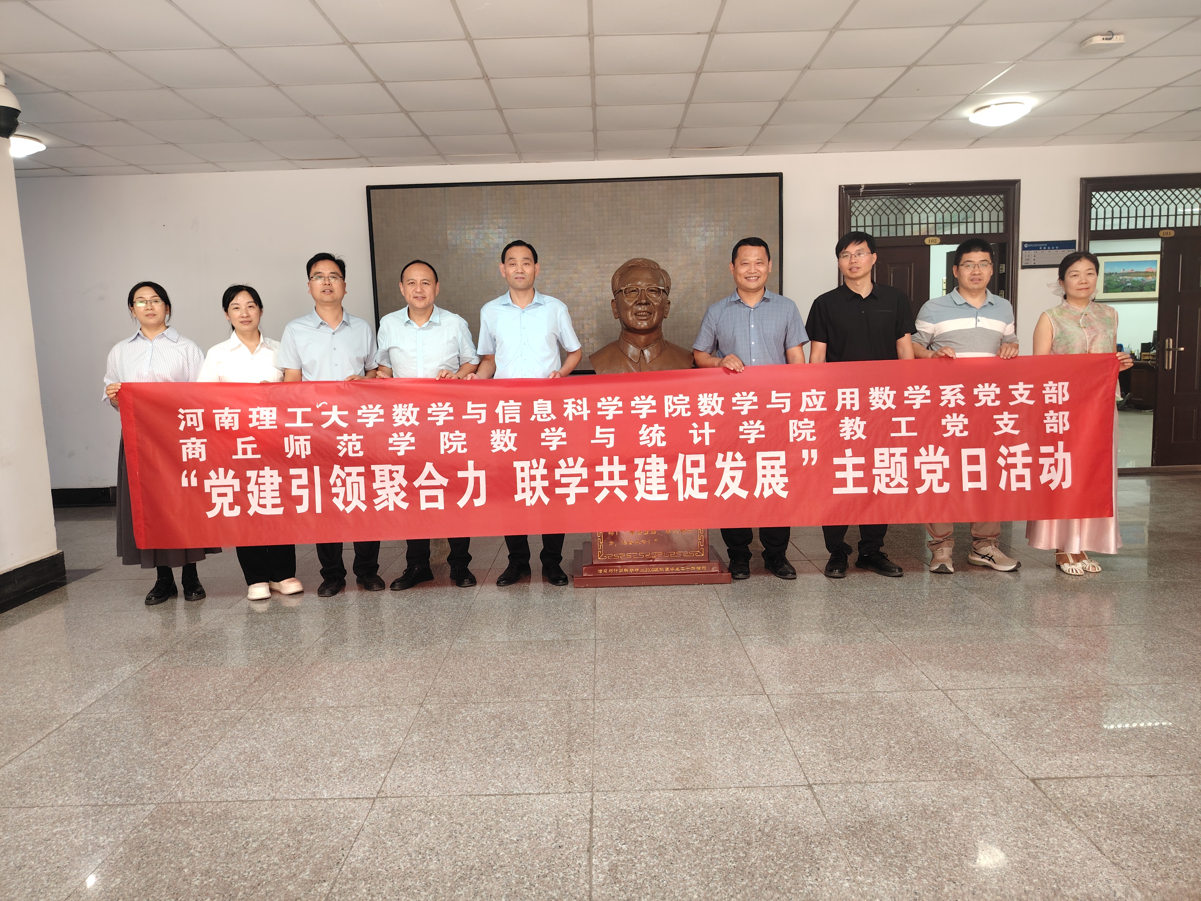 期间,我们与河南理工大学数学与信息科学学院数学与应用数学系党支部开展了“党建引领聚合力 联学共建促发展”主题党日活动。两个支部党员同志共同瞻仰了人民数学家华罗庚先生铜像,参观了华罗庚科学事业成就展,学习了华罗庚先生矢志不渝、“70岁入党终不悔”的崇高追求和光辉事迹。通过参观图片展、学习交流,与会人员对华罗庚先生的生平事迹、科学成就、高尚情操有了更深入的了解,同时也激发了在数学领域追求卓越、勇于创新的热情和动力。大家还共同参观了该院数学文化长廊、党建文化长廊、党建荣誉墙、教工之家、数学与应用数学系党支部活动室等。