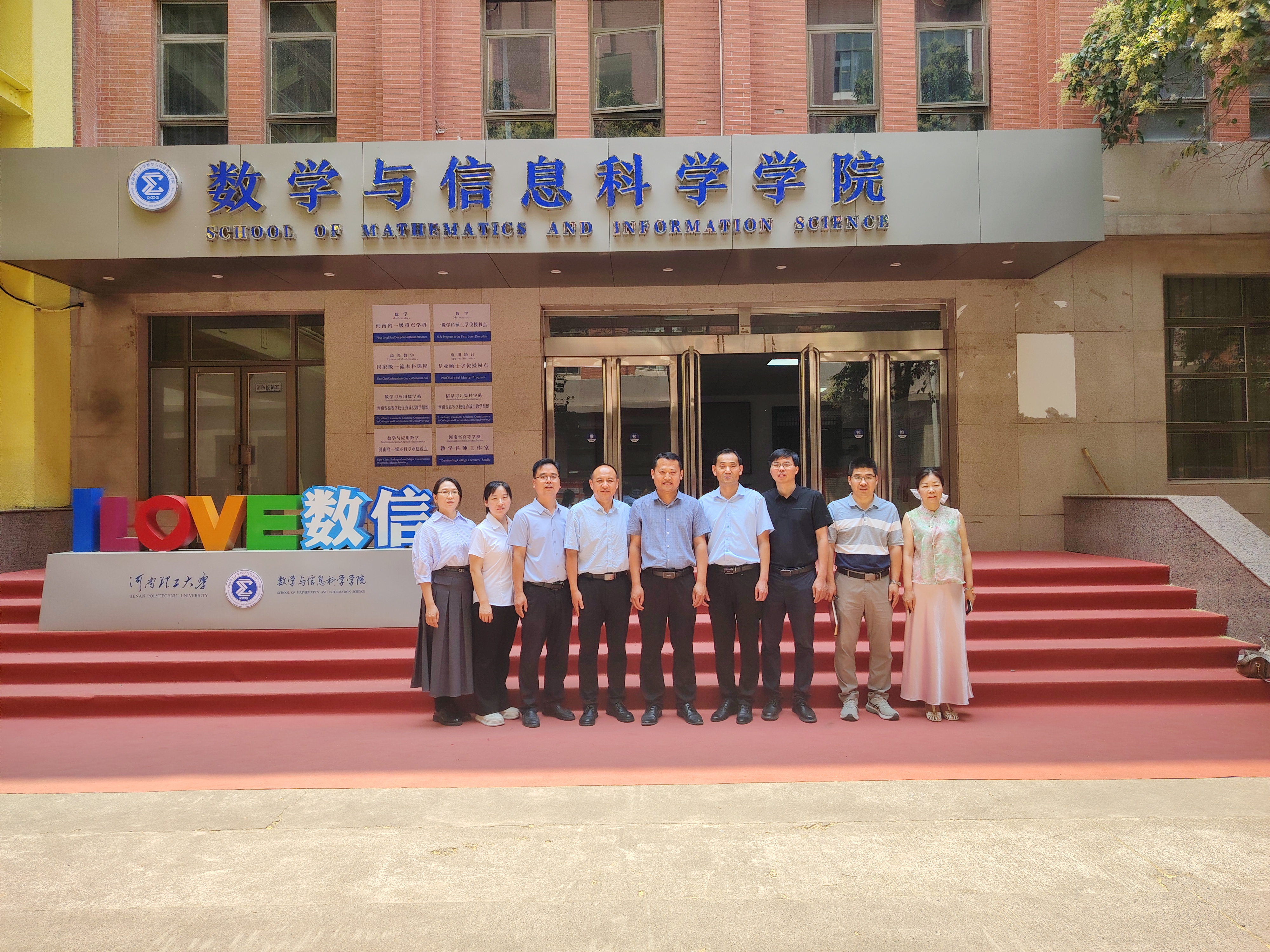 河南理工大学数学与信息科学学院党委书记刘春德热情接待了孟学超一行。会前,与会人员共同观看了河南理工大学的宣传片。