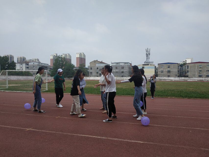 本次活动分为“心有灵犀”、“保护气球大作战”和“盲人过障碍”三个。在活动现场,同学们首先进行的是“保护气球大作战”,四人一组,两个人脚上绑着气球,两个人保护她们,两组对抗,由绑着气球的两个同学来踩爆对面两位绑着气球的同学,操场上充满了同学们的欢声笑语;其次,进行的是“心有灵犀”活动,你来比划我来猜,看哪个组猜中的词语更多,在稀奇古怪的比划与提示下增加了许多笑闹;最后,进行的是“盲人过障碍”,一人蒙上眼睛,另一个人牵着她过障碍物,谁的时间更短获胜,现场氛围十分活跃。