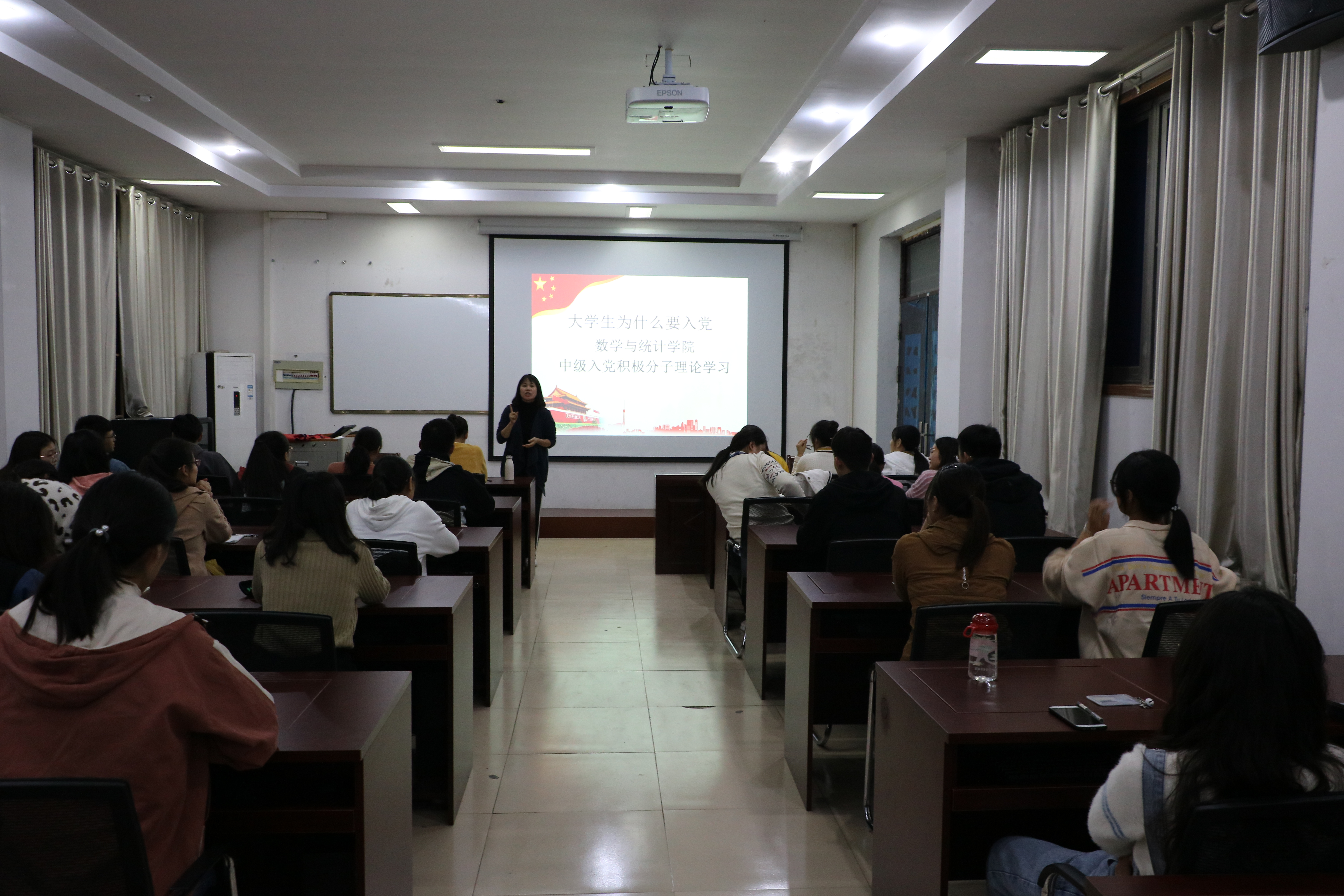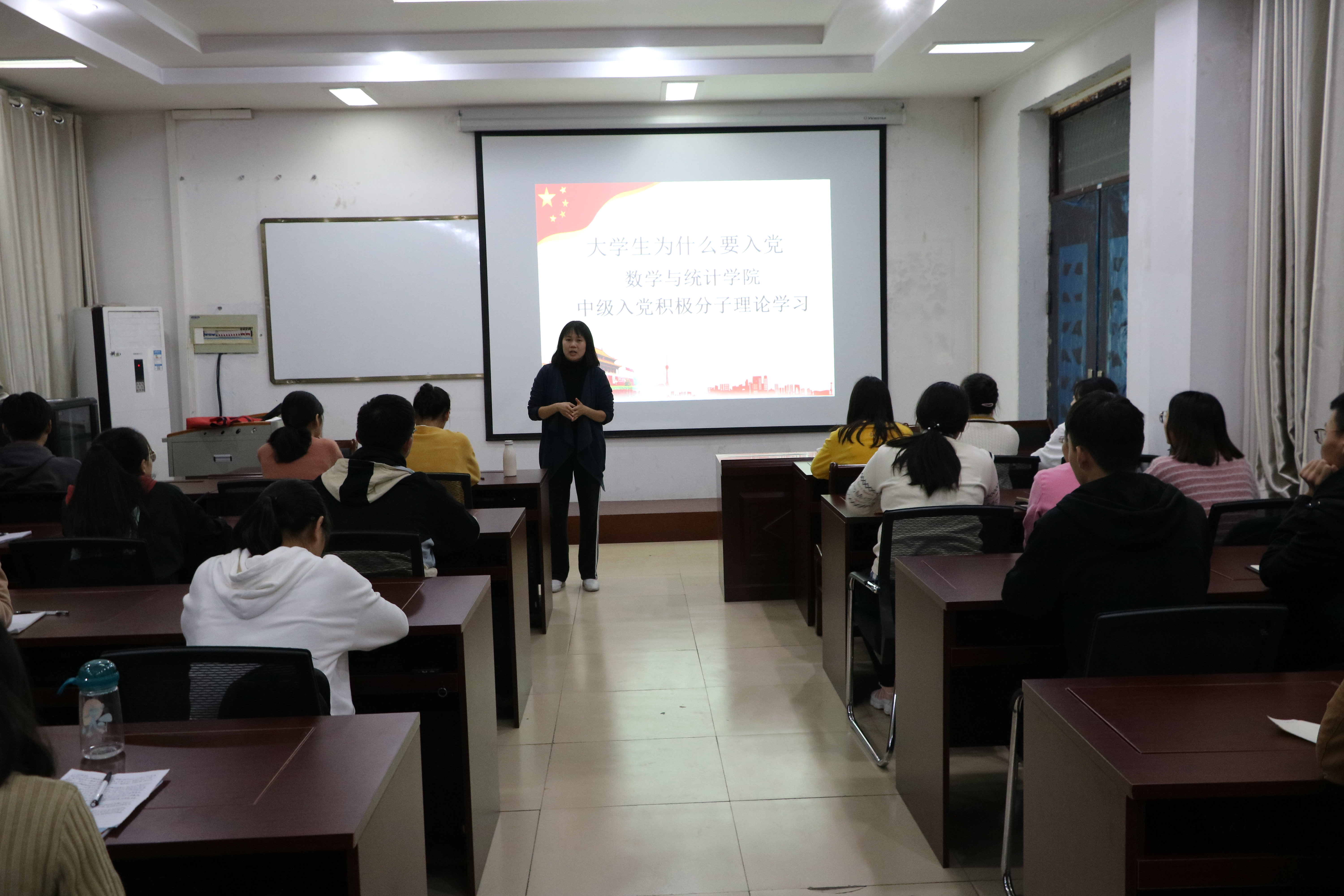 为进一步学习和宣传党的路线、方针和政策,了解党的精神内涵及其先进性,正确认识大学生入党的必要性。beat365英国官网网站于10月19日晚在办公楼208教室召开"大学生为什么要入党"中级入党积极分子理论学习主题党课。本次党课由黄丽芝老师主讲,beat365英国官网网站全体中级入党积极分子参加。