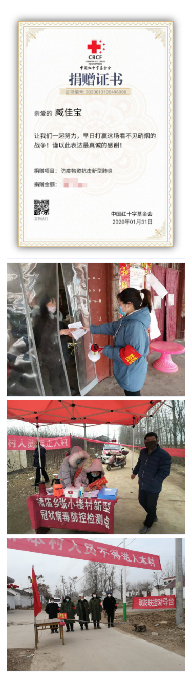 新型冠状病毒肺炎情况出现后,beat365官网学生高度关注疫情情况,能够按照学院的要求自觉在家隔离预防。虽然不能外出,但是同学们自发的在抗疫期间在力所能及的情况下主动向疫情灾区捐赠医疗物资;学院团总支副书记高乐等部分党员代表在家期间听说当地防控新型冠状病毒感染肺炎的阻击战中需要党员来进行一线执勤,作为一名中共预备党员的他立即通过家长联系到村干部,恳请让自己也参加到当地的联防联控的工作当中,在征得同意之后第二天就参与到村口执勤的志愿工作当中,通过自己的实际行动为疫情防控工作尽自己的一份力。