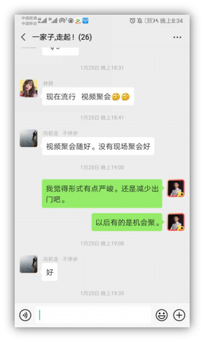 抗疫期间,在力所能及的情况下主动向疫情灾区捐赠医疗物资,在网络上不信谣不传谣,并劝说身边亲友过年期间不聚会不串门,进行网络视频聚会,形式改变,亲情不变。