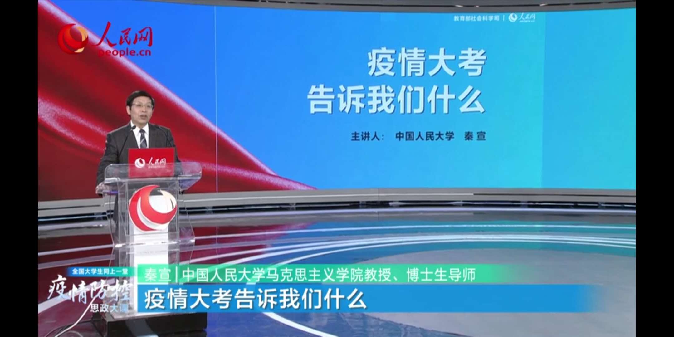本次思政大课特别邀请清华大学艾四林、中国人民大学秦宣、北京师范大学王炳林、中央财经大学冯秀军四位教授,结合“马克思主义基本原理概论”“毛泽东思想和中国特色社会主义理论体系概论”“中国近现代史纲要”“思想道德修养与法律基础”四门必修课教学内容,解读以习近平同志为核心的党中央关于疫情防控的决策部署,分析中国抗疫彰显的中国共产党领导和中国特色社会主义制度的显著优势,讲述防疫战疫一线的感人故事,发挥高校思政课落实立德树人根本任务的关键课程作用。