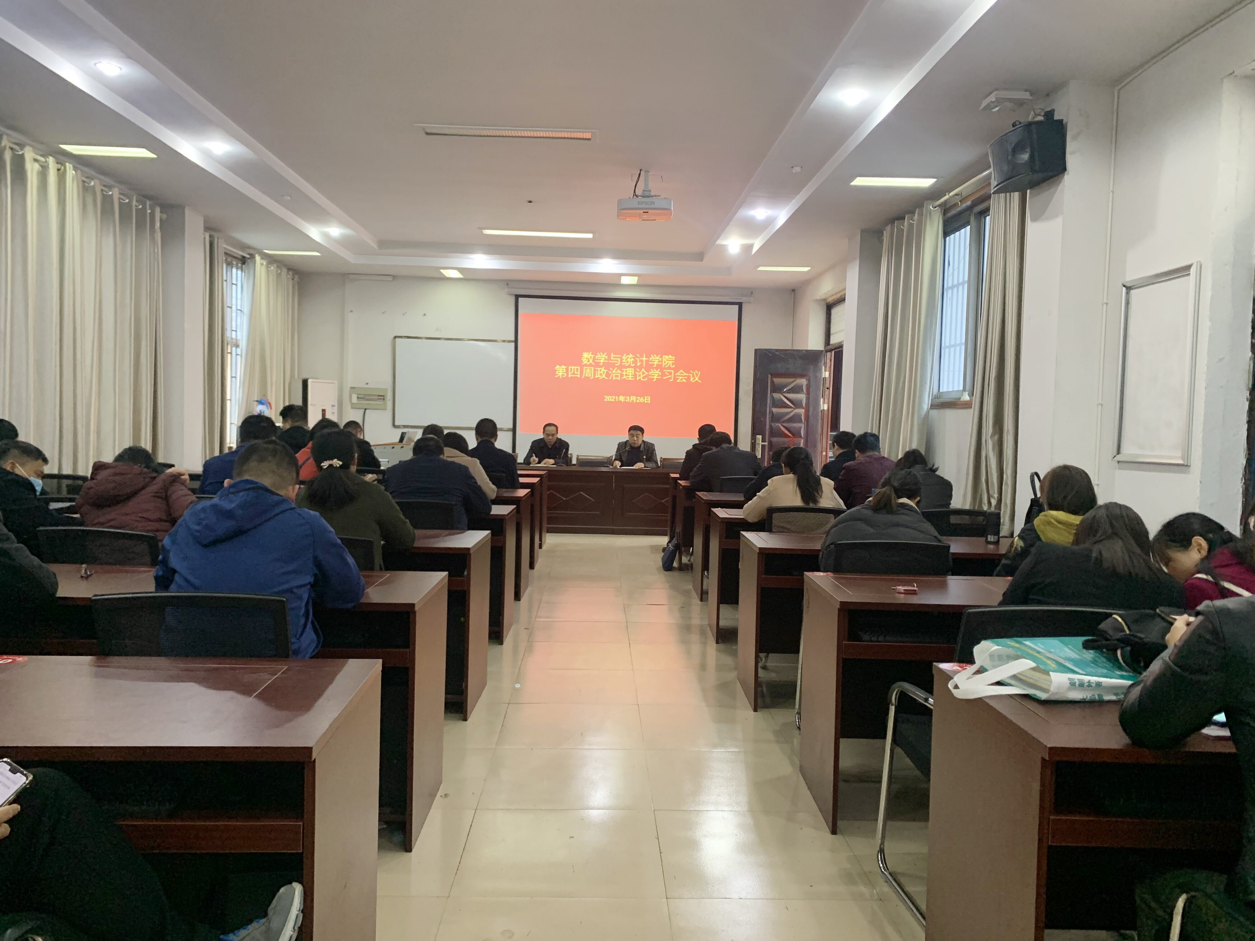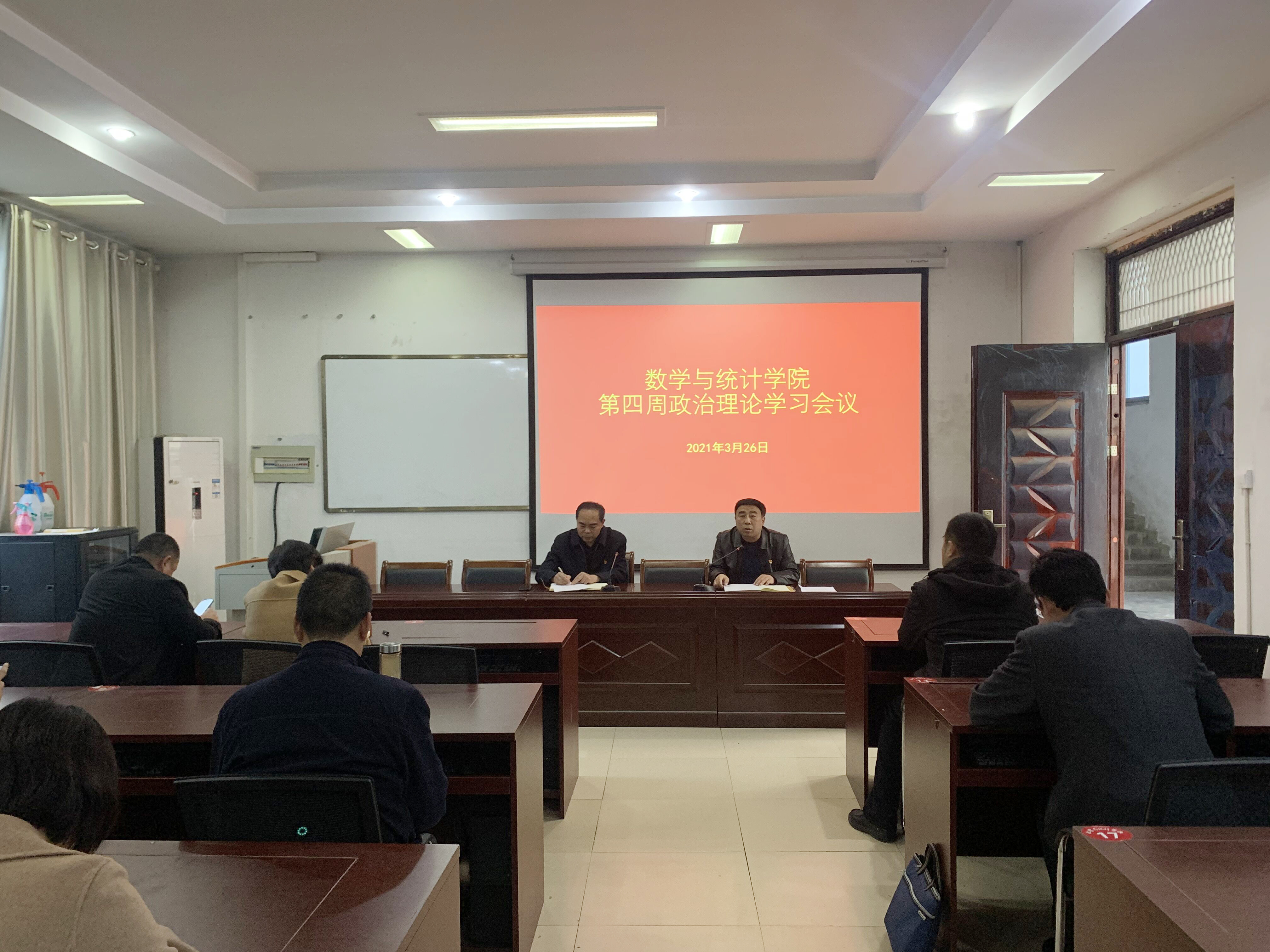 2021年3月26日,根据学校党史学习教育实施方案安排,beat365英国官网网站在数学楼综合会议室召开第四周政治理论学习会议,学院领导班子、全体教职工参加此次会议,会议由党总支书记陈东主持。