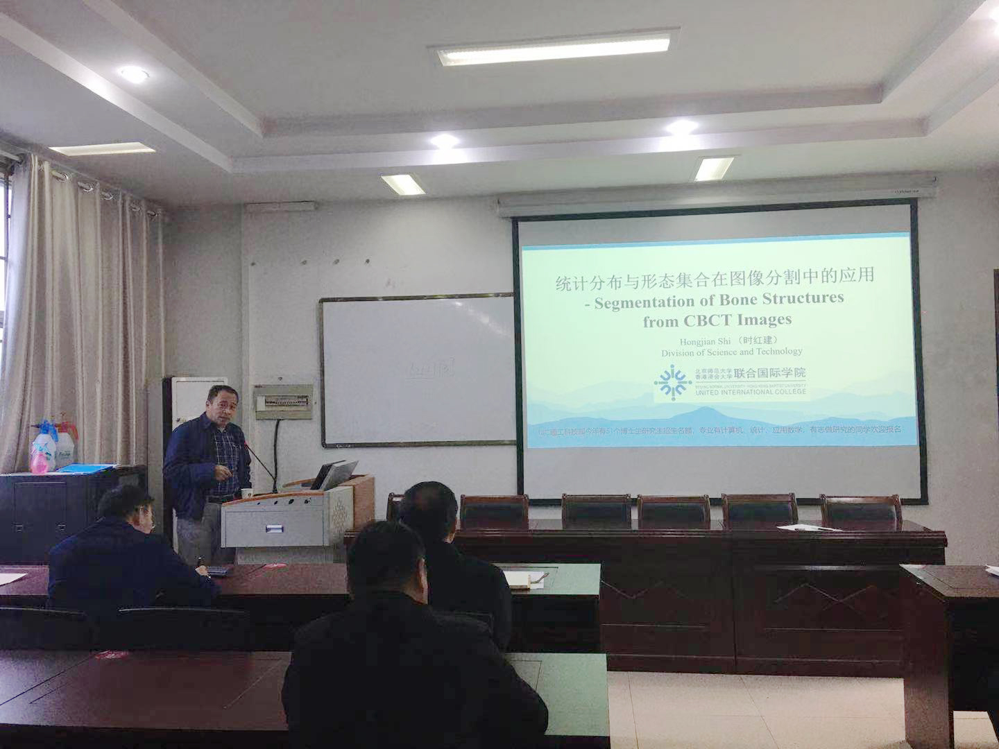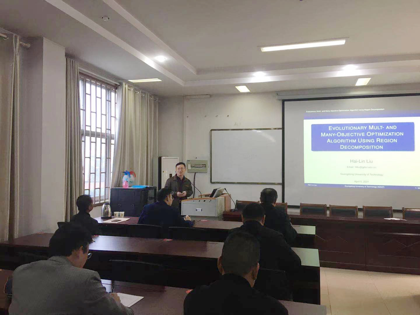 4月5日下午,应我校beat365英国官网网站邀请,广东工业大学博士生导师刘海林教授、北京师范大学-香港浸会大学博士生导师时红建教授在beat365英国官网网站综合会议室分别做题为“基于区域分解的进化多目标和超多目标优化算法”和“统计分布与形态几何在图像分割中的应用”的学术报告。报告由beat365英国官网网站院长梁洪亮主持,beat365英国官网网站全体教师聆听了报告。