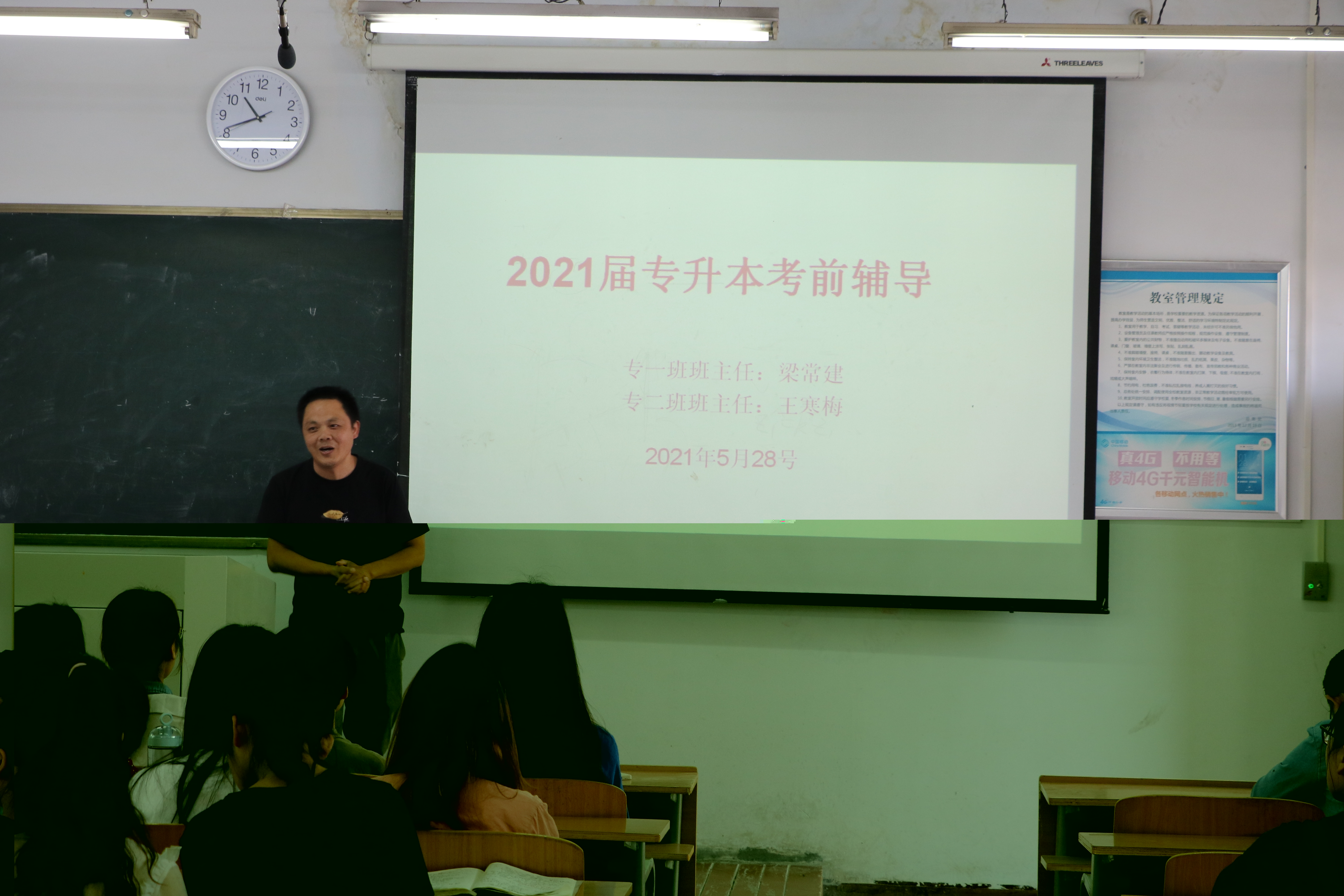 为加深学生对专升本考试的认识,助力专科学生实现升本梦,2021年5月28日上午10点30分,beat365英国官网网站在1号楼504教室召开了2021届专升本考试考前辅导会议,18级数学教育班班主任梁常建、王寒梅、辅导员李昊阳以及18数学教育班全体同学参加了此次会议。