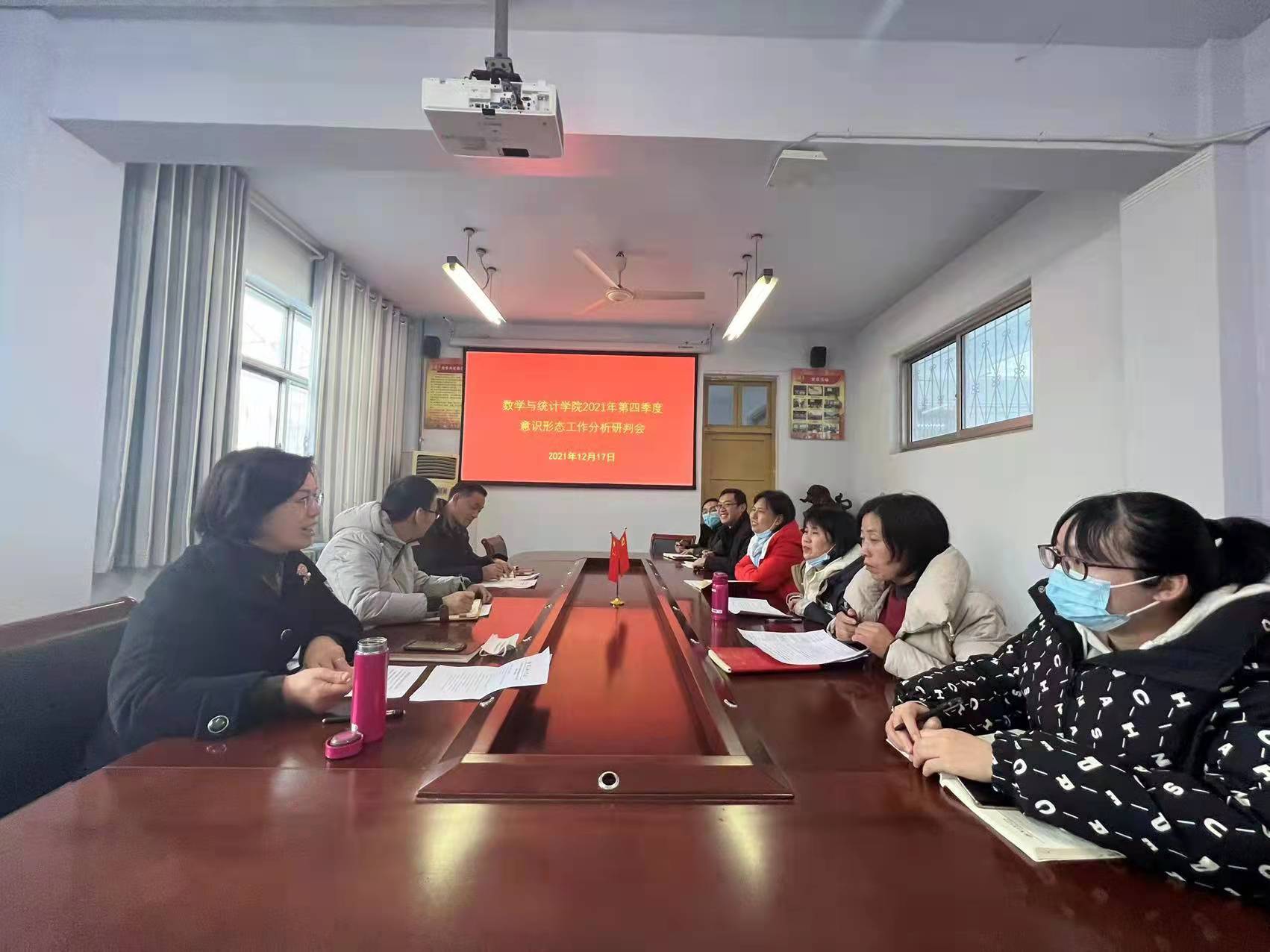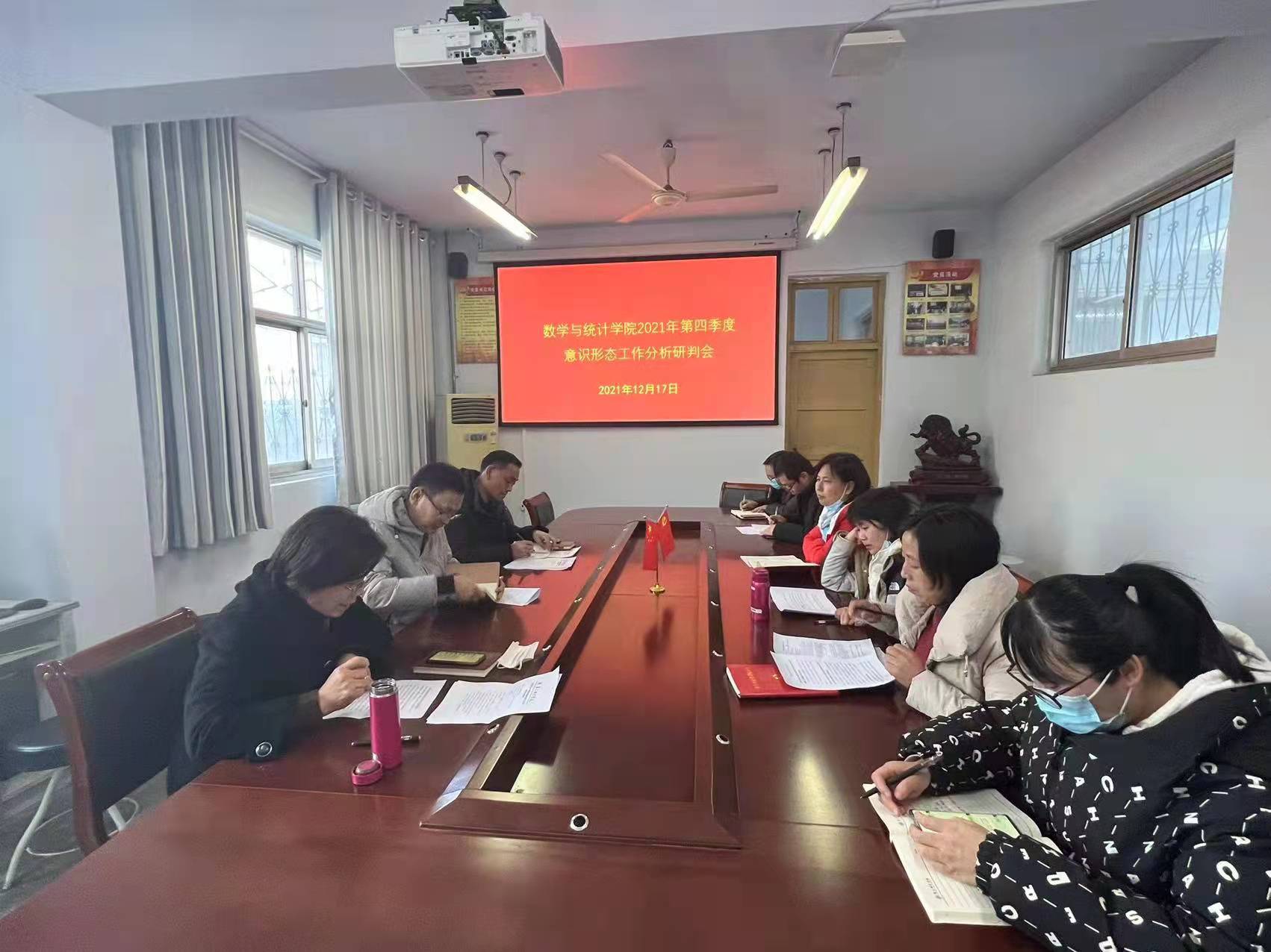 2021年12月17日下午,beat365英国官网网站在数学楼204会议室召开2021年第四季度意识形态工作分析研判会,学院党委委员、党支部书记、全体辅导员参加了此次会议,会议由党委书记孟学超主持。