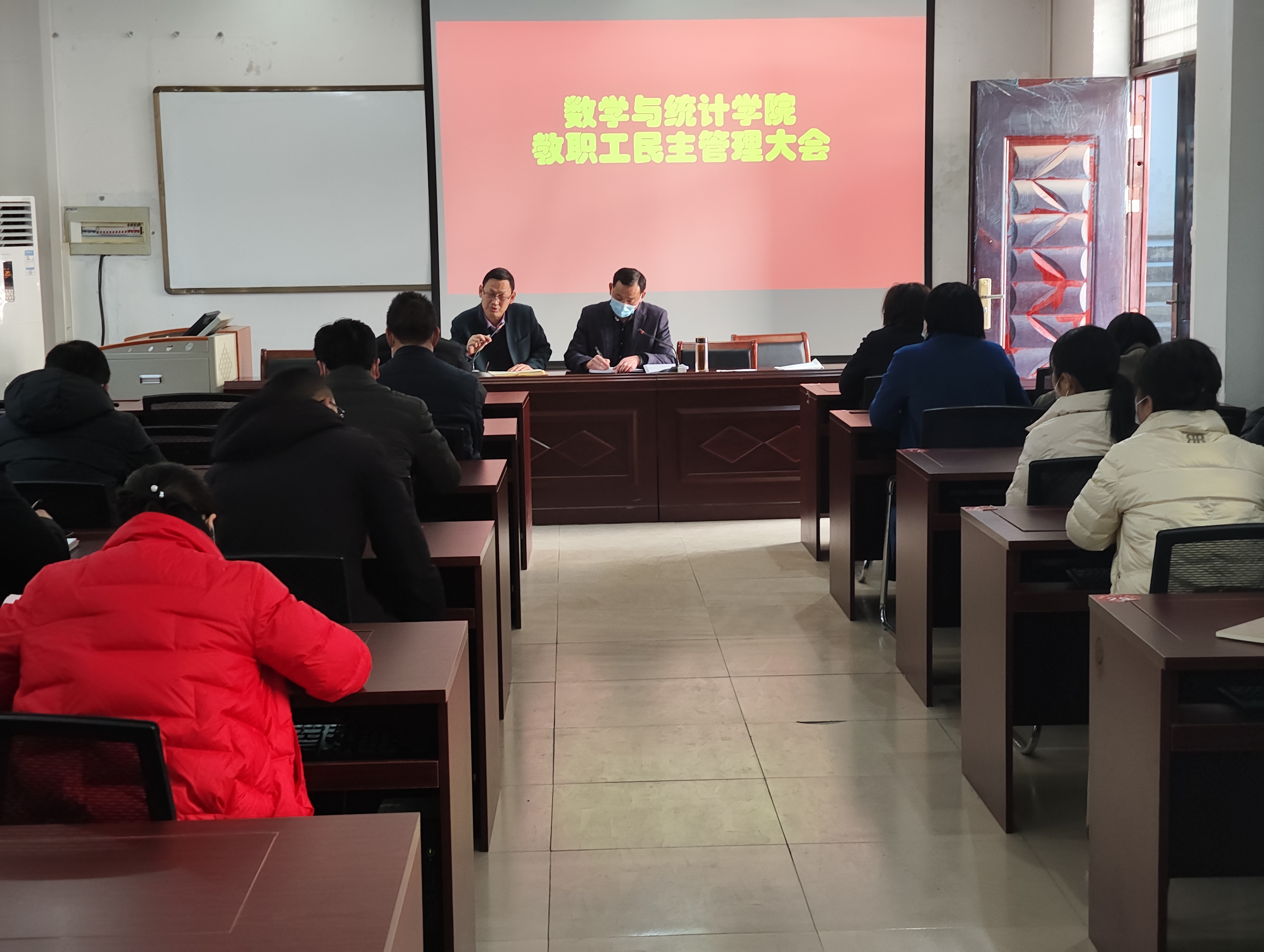 2021年12月17日,beat365英国官网网站在数学楼208会议室召开了教职工民主管理大会,学院领导班子、全体教职工参加了会议。会议由党委书记孟学超主持。