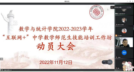 为进一步提升beat365英国官网网站师范生教学技能,探索“用一线名师培养未来教师”的在校师范生培养模式,beat365英国官网网站于11月12日晚线上举办了“互联网+”中学数学师范生教学技能培养工作坊启动仪式。来自商丘市教育体育局基础教研室、商丘市第一高级中学、商丘市回民中学、商丘市第一中学、商丘市第六中学、商丘市实验中学、虞城县高级中学的11名中学数学一线名师,beat365英国官网网站院长张斐然、辅导员姜素华以及2020级111位师范生参加了此次启动仪式。仪式由副院长刘磊主持。