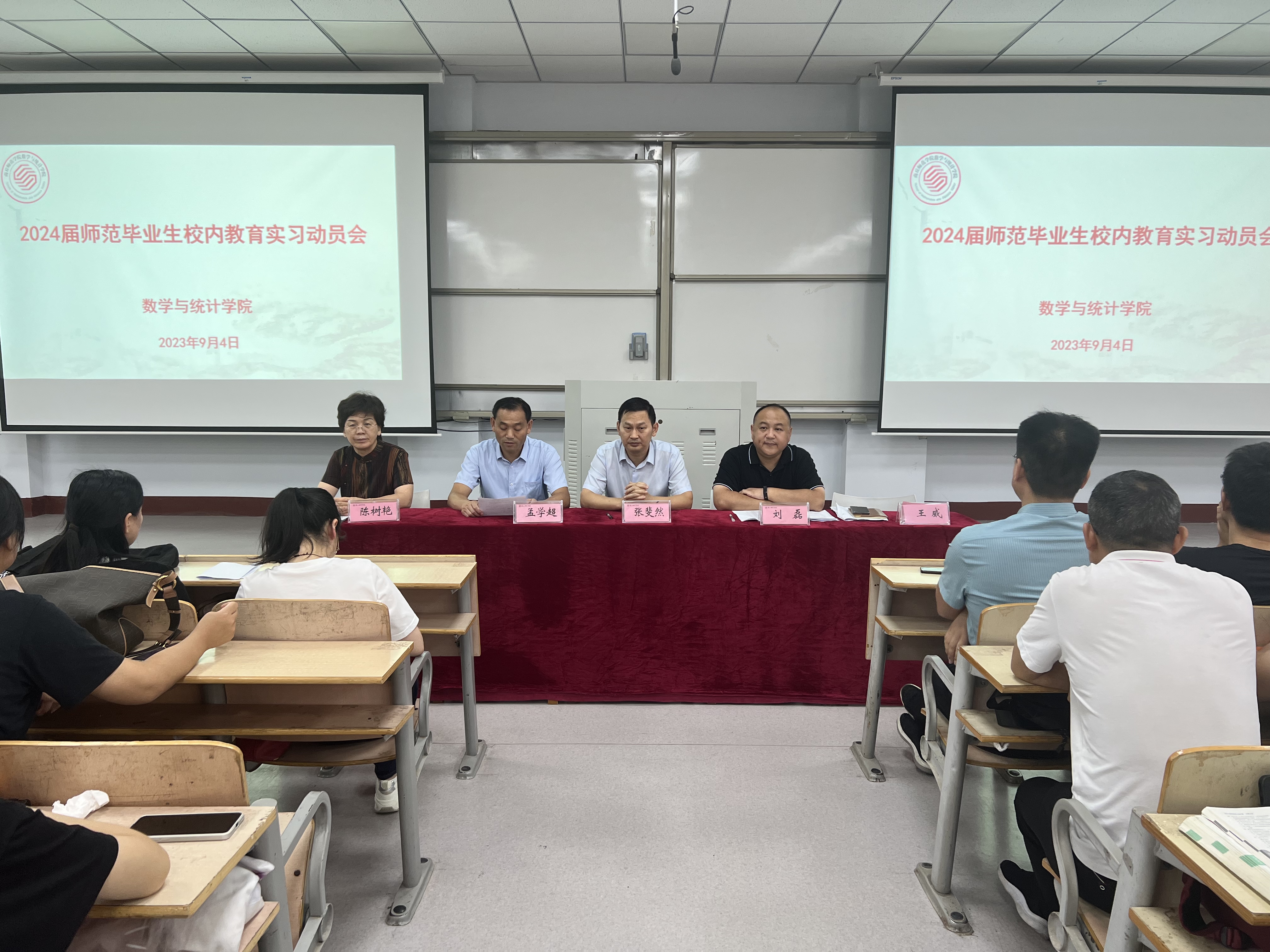 为了扎实做好2024届本科毕业生的教育实习工作,进一步促进学生对所学知识和技能进行实践运用,引导学生明确认识实习的目的和意义。9月4日beat365英国官网网站在一号教学楼208教室召开了2024届本科毕业生教育实习动员大会。学院党委书记孟学超、院长张斐然、副院长刘磊、教育实习指导老师以及2020级数学与应用数学专业全体学生参加了会议。会议由学院党委副书记陈树艳主持。