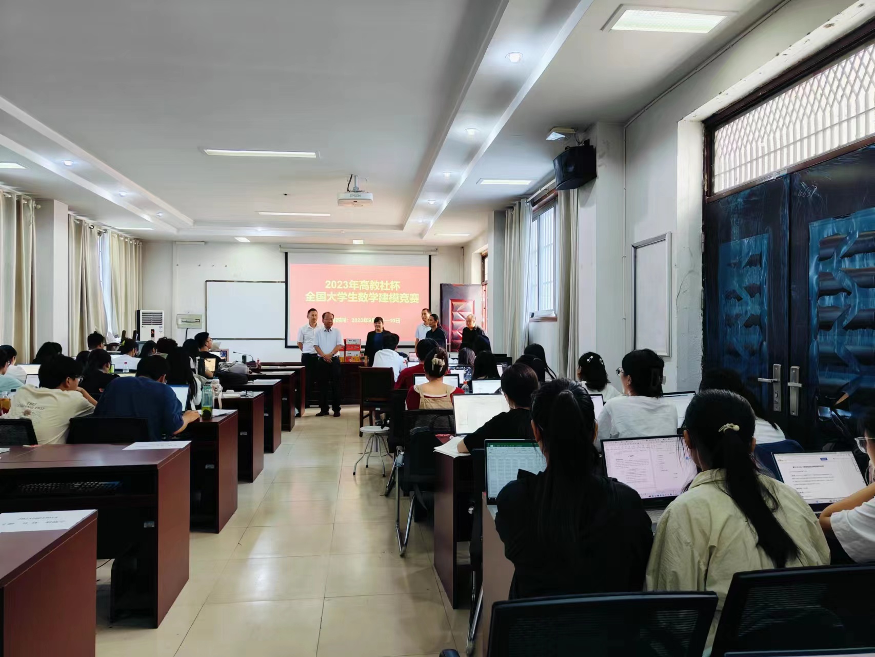 2023年9月10日上午,副校长郭文佳与教务处处长韩桂玲、学生处处长王晓征一行莅临我校全国大学生数学建模竞赛现场慰问并指导参赛学生。在建模现场,郭文佳勉励参赛队员团结拼搏,争创佳绩。随后,郭文佳嘱托建模指导教师做好服务,为同学们参赛提供最佳后勤保障。