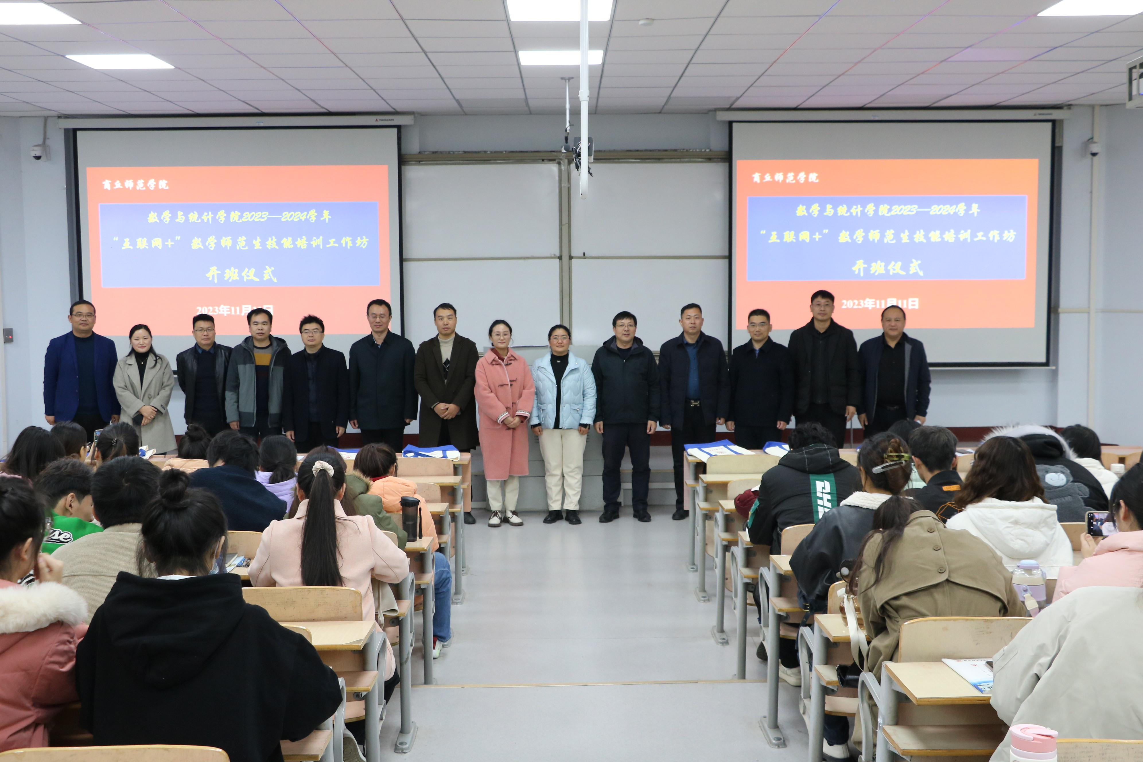 为进一步加快数学与应用数学专业师范生成长步伐,着力打造一支师德高尚、业务精良的高素质教师队伍,2023年11月11日上午,beat365英国官网网站在我校睢阳校区1207教室举行数学与应用数学专业“互联网+”中学数学师范生技能培训工作坊开班仪式。仪式由beat365英国官网网站副院长刘磊主持,商丘市教育体育局基础教研室佟俊姬老师和来自商丘市第一高级中学、商丘市回民中学、商丘市实验中学的12位一线教学名师以及数学与应用数学系主任司红颖出席此次会议。