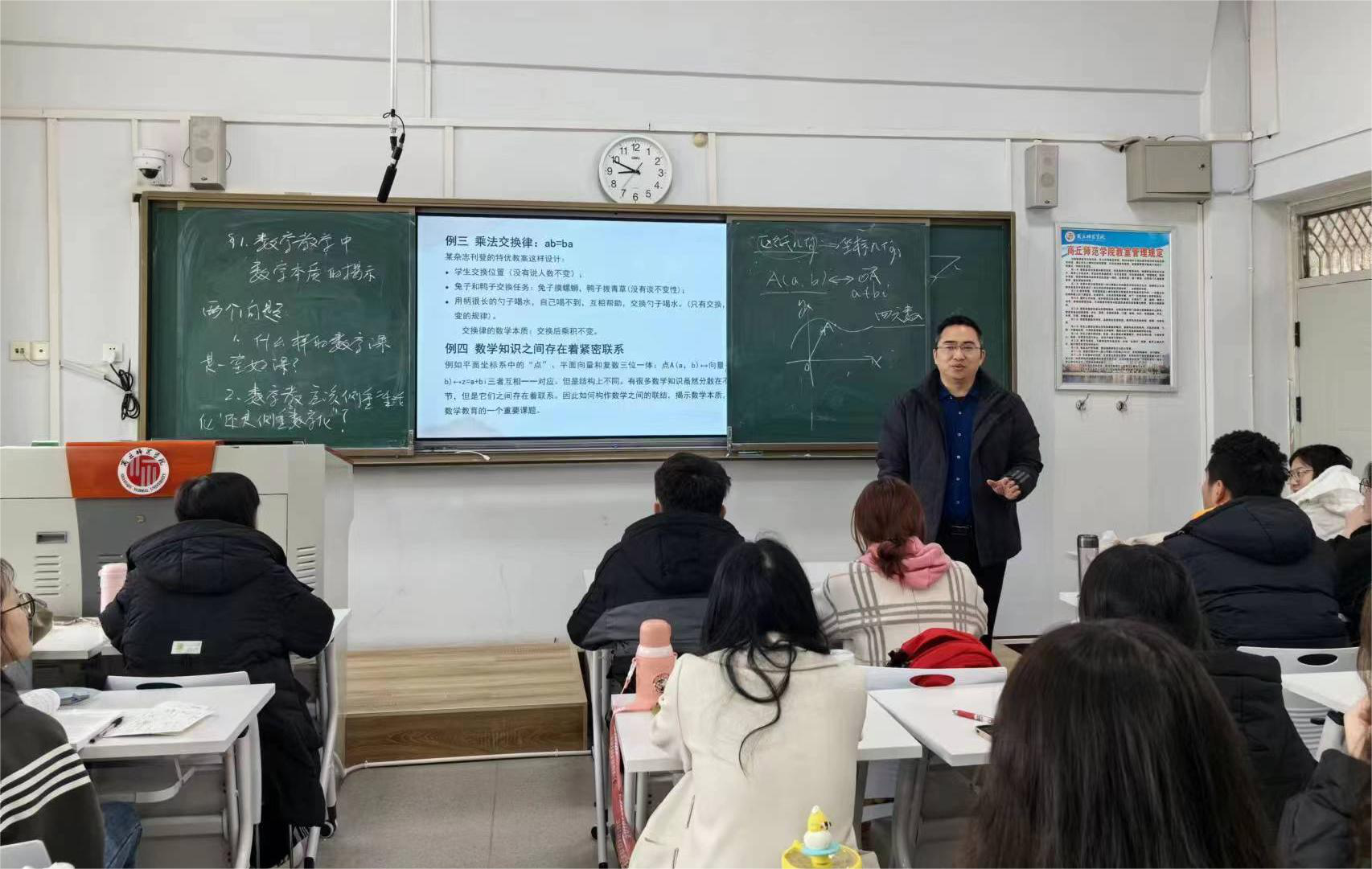 11月15日上午,beat365英国官网网站吕松涛老师在睢阳校区1号教学楼509教室进行了《中学数学教材教法》课程教学范式改革公开课,beat365英国官网网站副院长任磊、校级督导员荆天及本院部分教师亲临教学范式改革现场进行观摩指导!