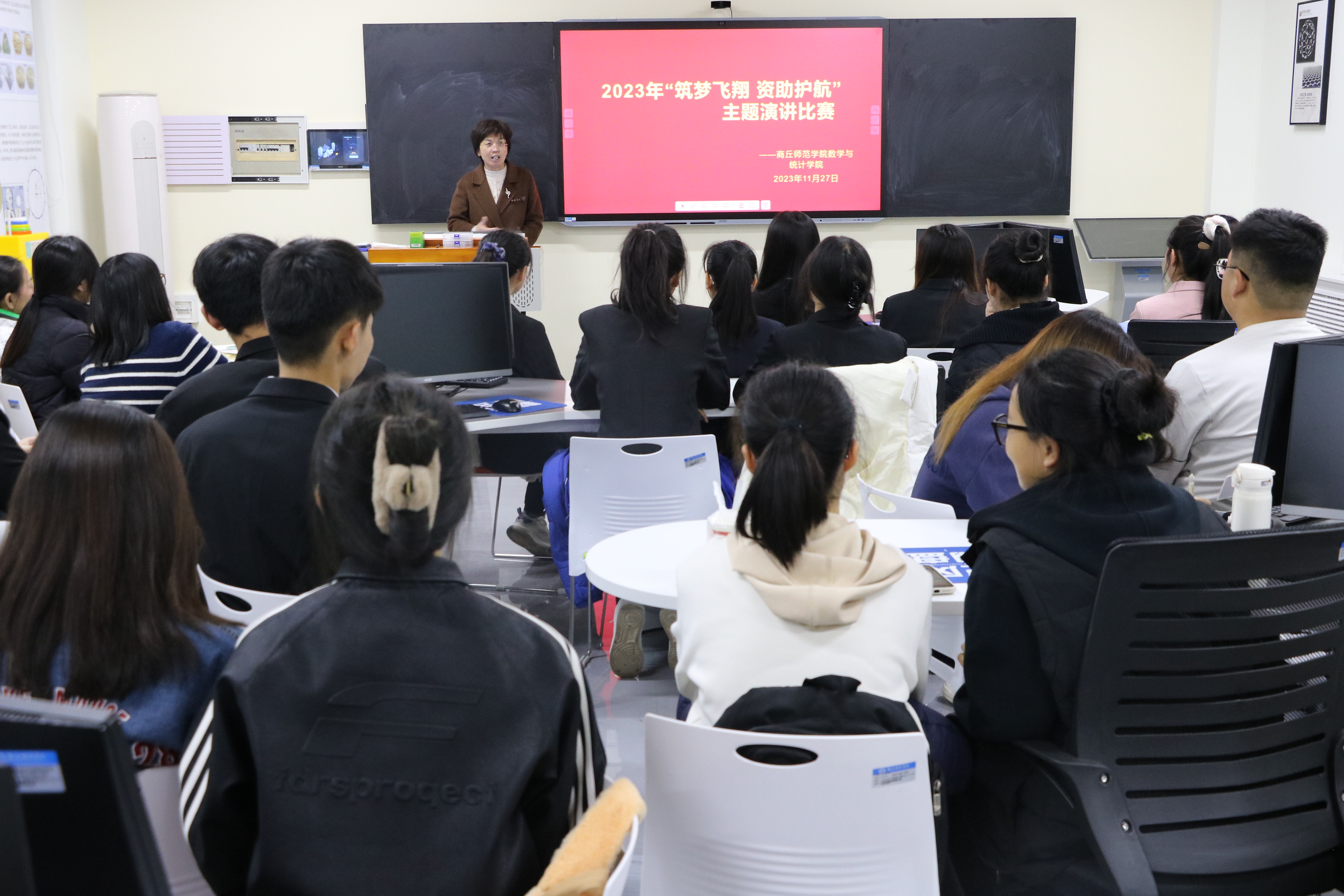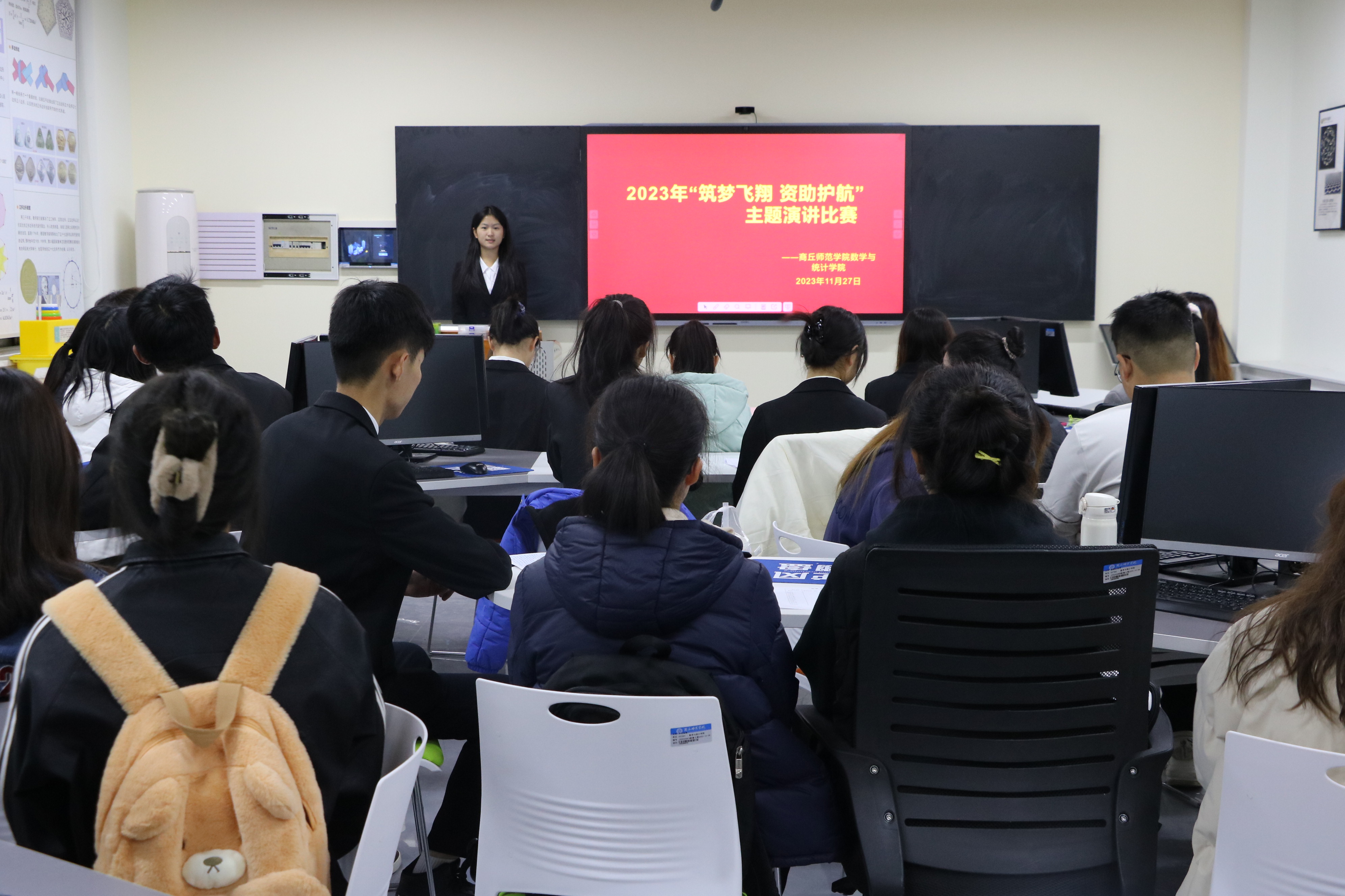 为宣传国家资助政策,充分发挥资助育人功能,加强校园文化建设,beat365英国官网网站于2023年11月27日晚上七点在办公楼310教室举行了“筑梦飞翔,资助护航”主题演讲比赛。本次演讲比赛由学习纪检部张佳琪主持,党委副书记陈树艳及学院各年级辅导员担任评委,11位参赛同学参加。