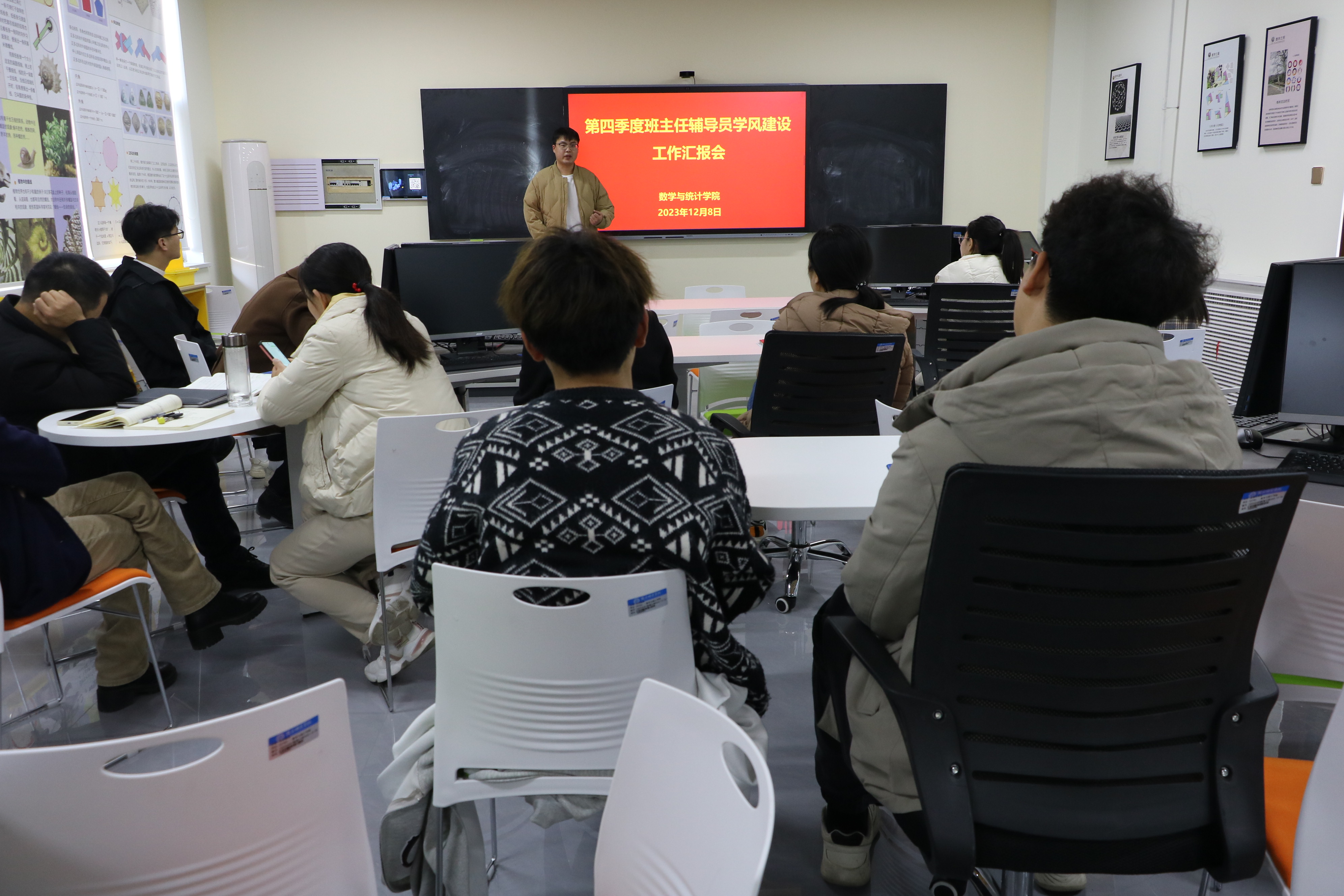 为总结学风建设工作的经验,进一步巩固学风建设成果,beat365英国官网网站于2023年12月8日下午两点半在办公楼310会议室举行第四季度班主任辅导员学风建设工作汇报会。本次会议由学院党委副书记陈树艳主持,全体院领导和非毕业班班主任辅导员参会。