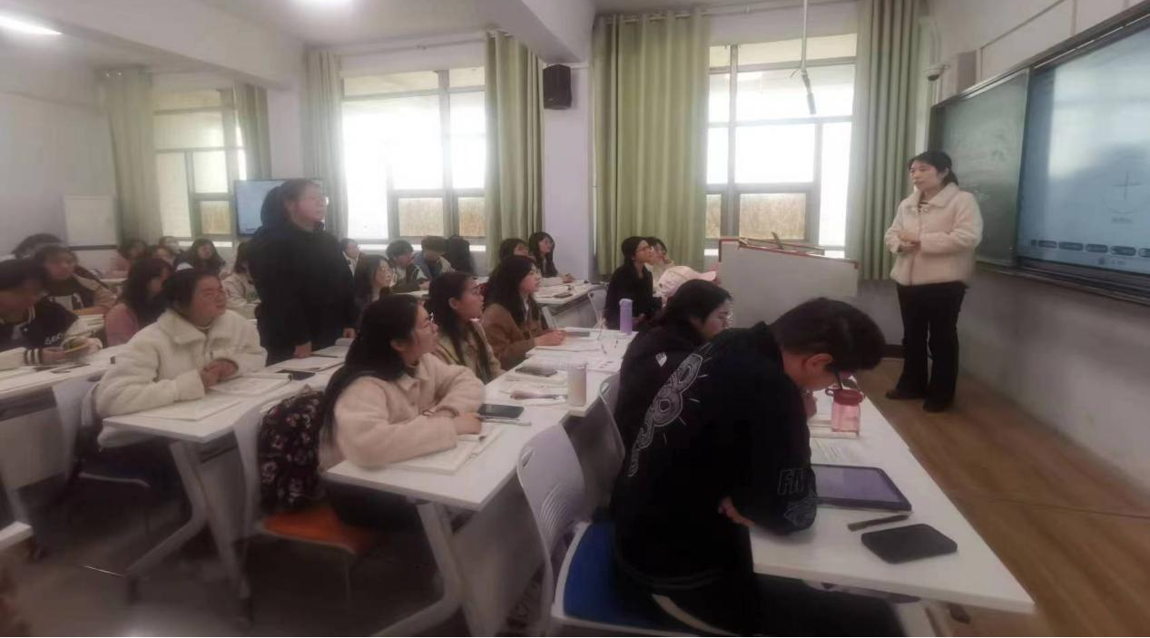 孙跃娟首先在泛雅平台上采用抢答、随机选人、主题讨论等方式,检测了同学们预习的效果,并且对题目涉及的知识点进行了简单的讲解和评述。然后孙跃娟进行了新课的串讲,同时对存在问题较多的知识点进行了细致地讲解。在讲解过程中,孙跃娟注重理论联系实际,把复杂难懂的数学问题通过简单的生活实例展现出来,不但提高了同学们的学习兴趣而且提高了学生的学习效果。孙跃娟在教学过程中关注每一位同学的课堂反应,课堂气氛活跃,同学们积极地参与各项讨论,整个教学过程完整有序,学习效果好。