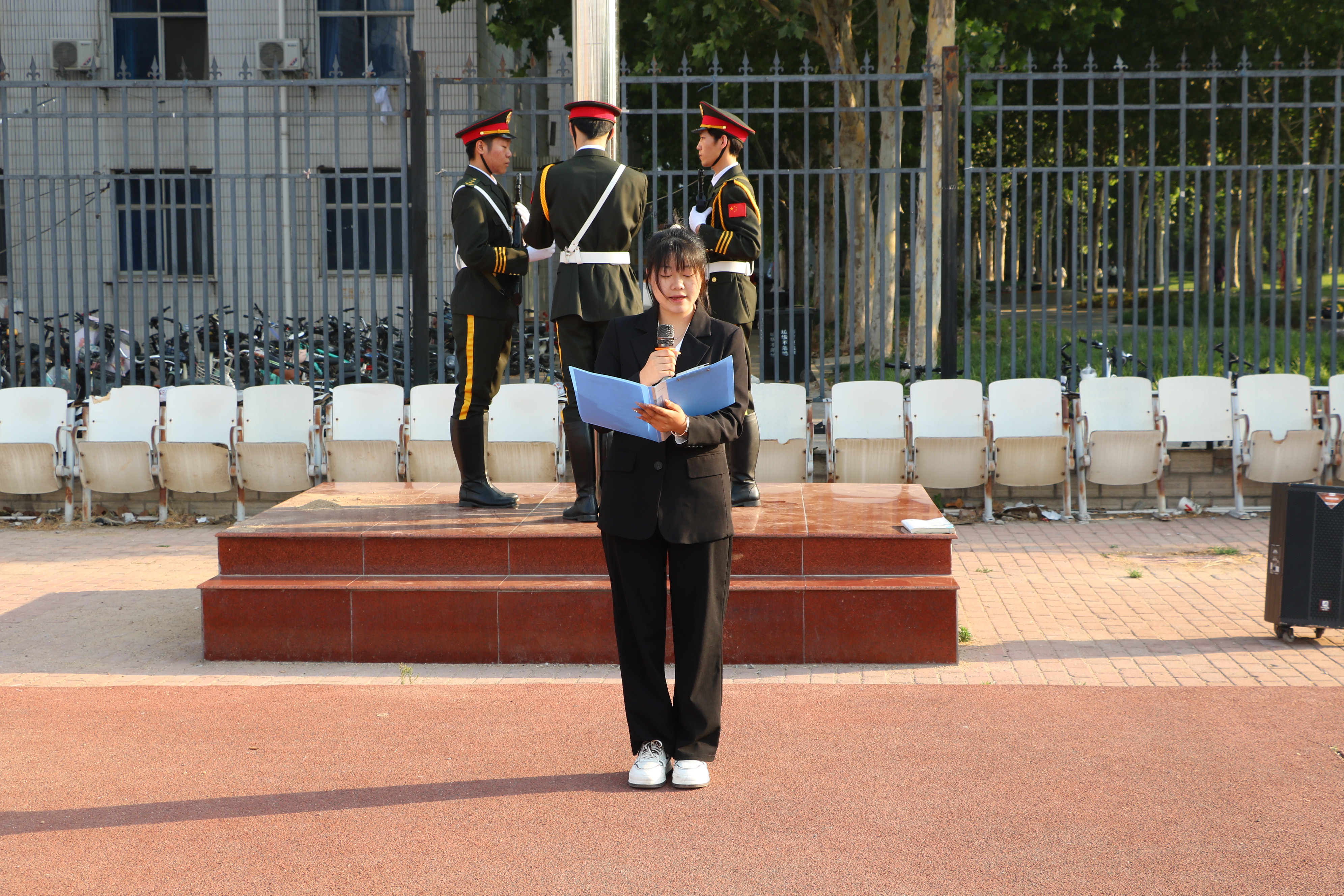 为弘扬红色精神,传承爱国情怀,beat365英国官网网站于6月3日在睢阳校区体育场开展“忆百年峥嵘岁月,请长缨不负青春”主题升旗仪式。本次升旗仪式由吴越主持,beat365英国官网网站党委书记孟学超、院长张斐然、党委副书记陈树艳、副院长任磊及各年级辅导员出席,beat365英国官网网站22级、23级全体学生参加。