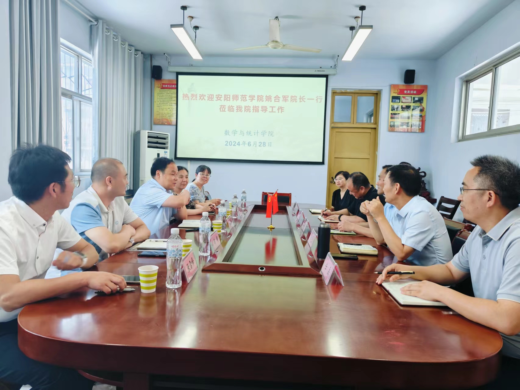 6月28日下午,安阳师范学院beat365英国官网网站姚合军院长一行5人来beat365官网进行调研交流。学院党政班子成员及相关负责人热情接待了姚合军一行,院长张斐然主持会议。