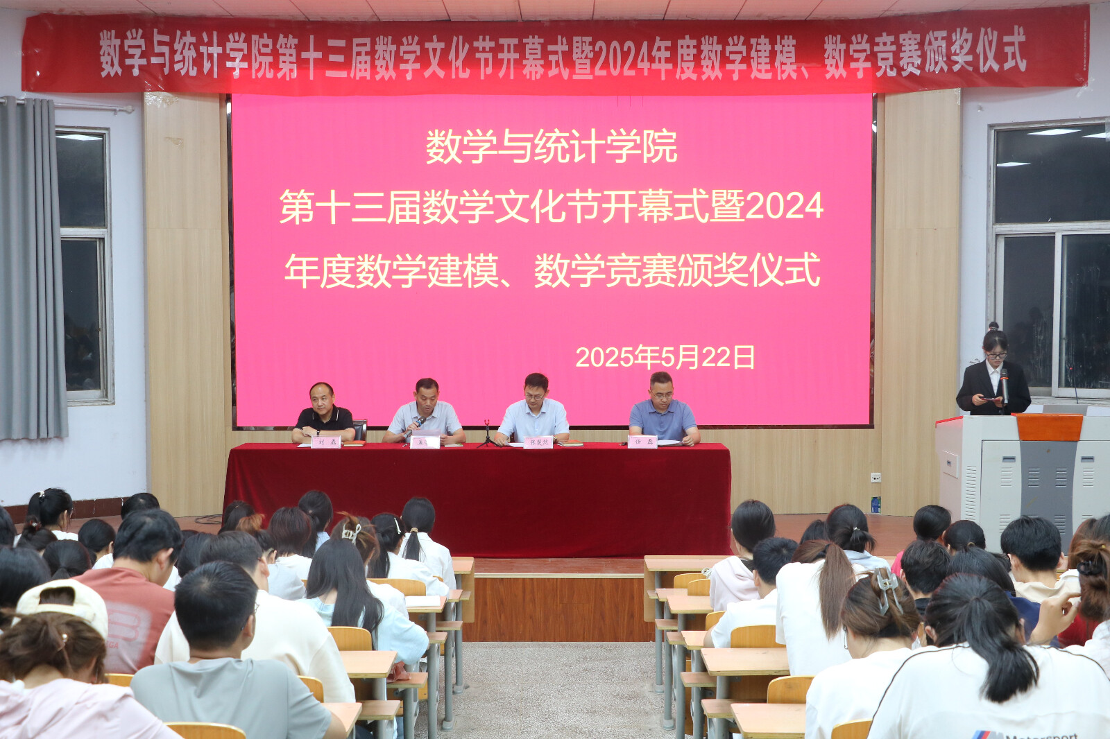 5月22日下午,beat365英国官网网站第十三届数学文化节开幕式暨2024年数学建模和数学竞赛表彰大会在睢阳校区物理报告厅举办。学院党委书记孟学超、院长张斐然、副院长刘磊、任磊及全体辅导员出席本次活动,获奖同学及22级、23级学生代表参加。