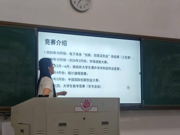 为激发学生的学习热情,葛星最后介绍了大学期间可参与的竞赛项目,如全国大学生市场调查与分析大赛、统计建模大赛、课外学术科技作品竞赛等。鼓励学生通过竞赛锻炼实战能力,将理论知识转化为解决实际问题的本领。现场学生反响热烈,纷纷表示对专业学习有了更清晰的目标。