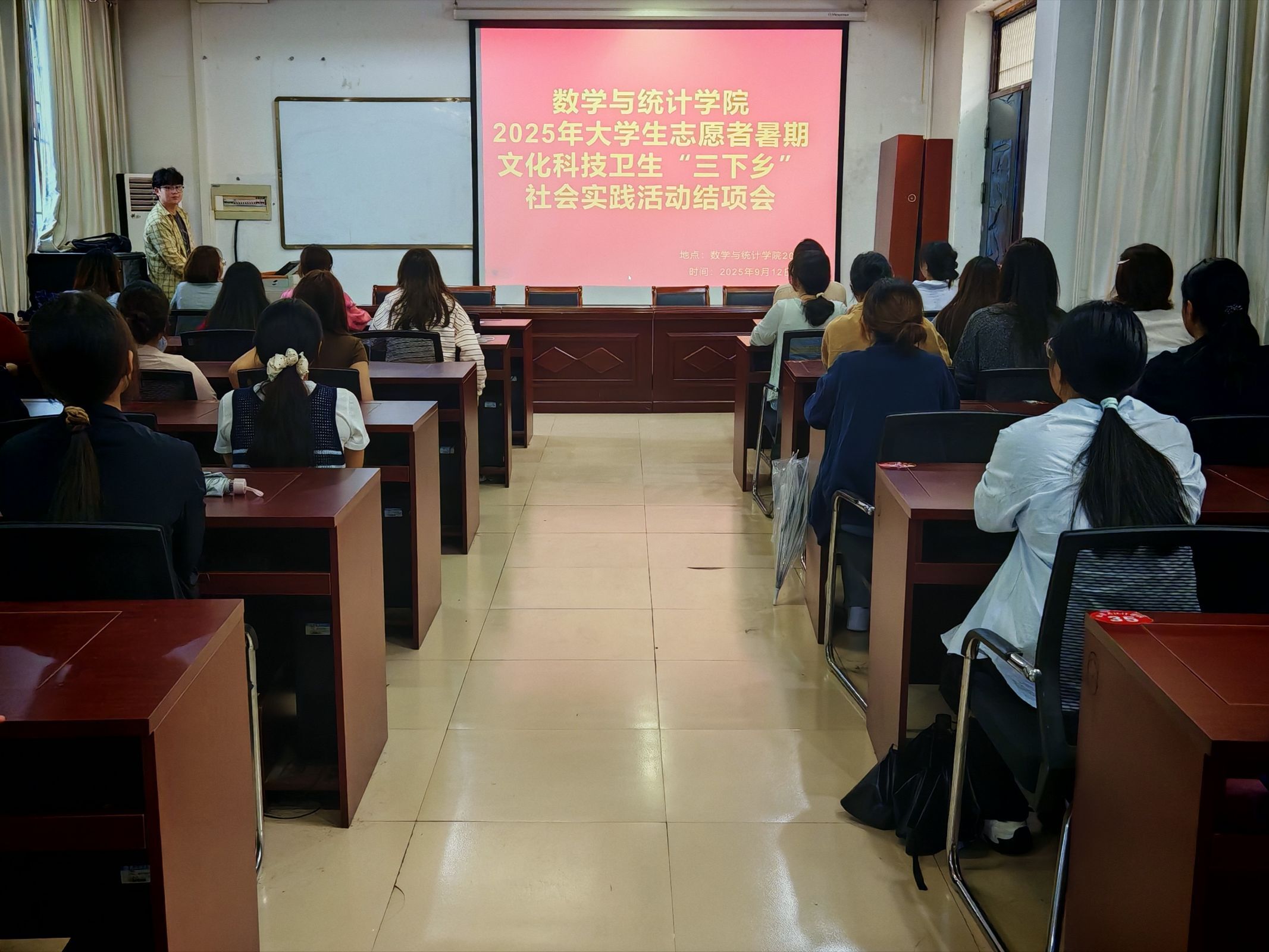为总结暑期社会实践活动的经验及成果,促进各个学生团队之间交流学习,beat365英国官网网站于2025年9月12日下午召开了2025年大学生志愿者暑期文化科技卫生“三下乡”社会实践活动结项会。本次结项会由beat365英国官网网站团委学生会组织部侯明帅主持,beat365英国官网网站团委负责人李昊阳出席。