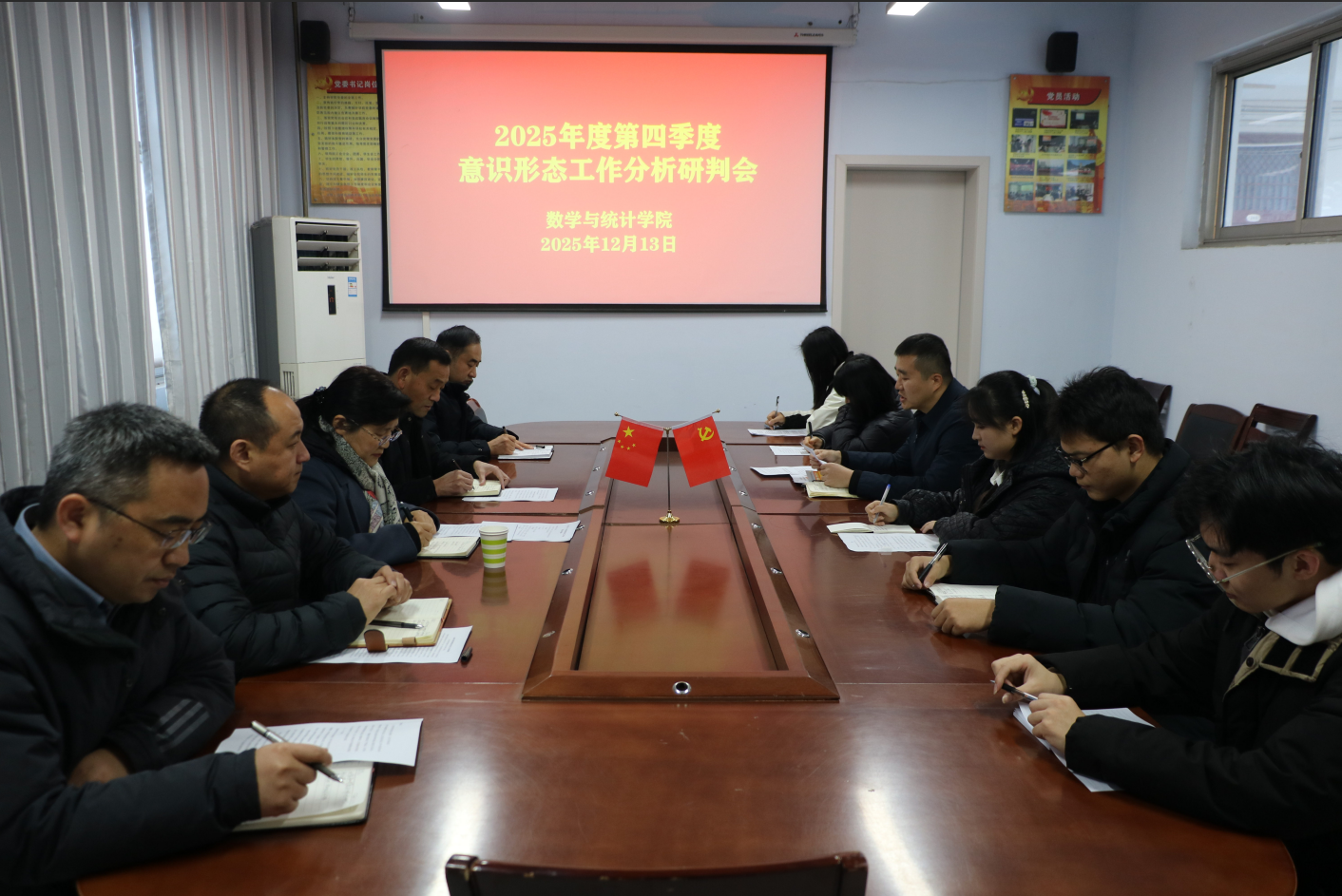 12月13日,beat365英国官网网站在数学楼204会议室召开2025年第四季度意识形态工作分析研判会。副校长韩桂玲出席会议,学院领导班子成员、全体辅导员及学生代表参加。会议由学院党委书记孟学超主持。