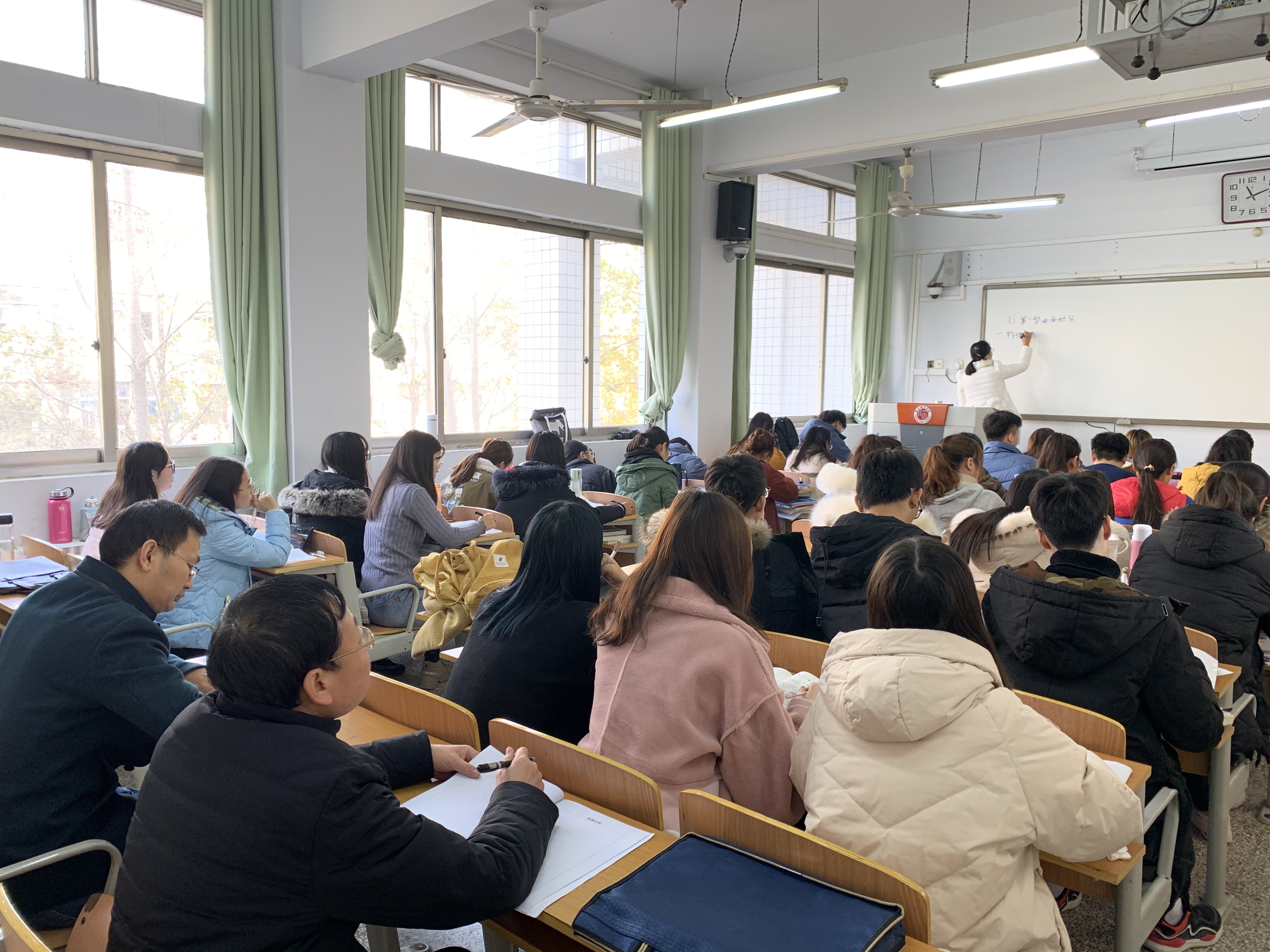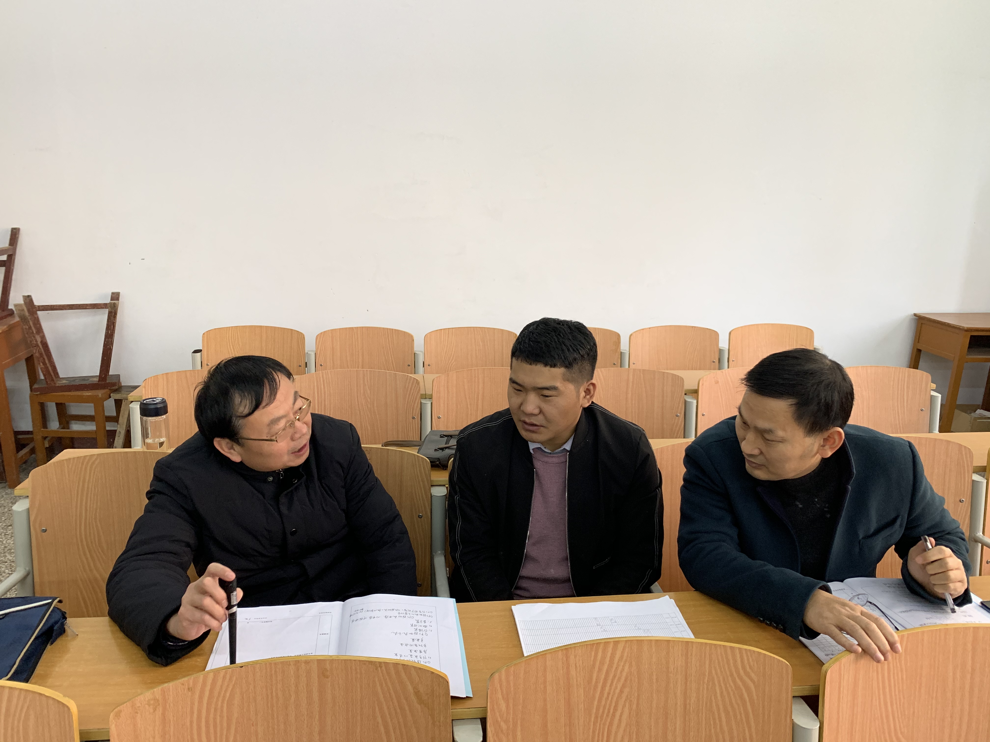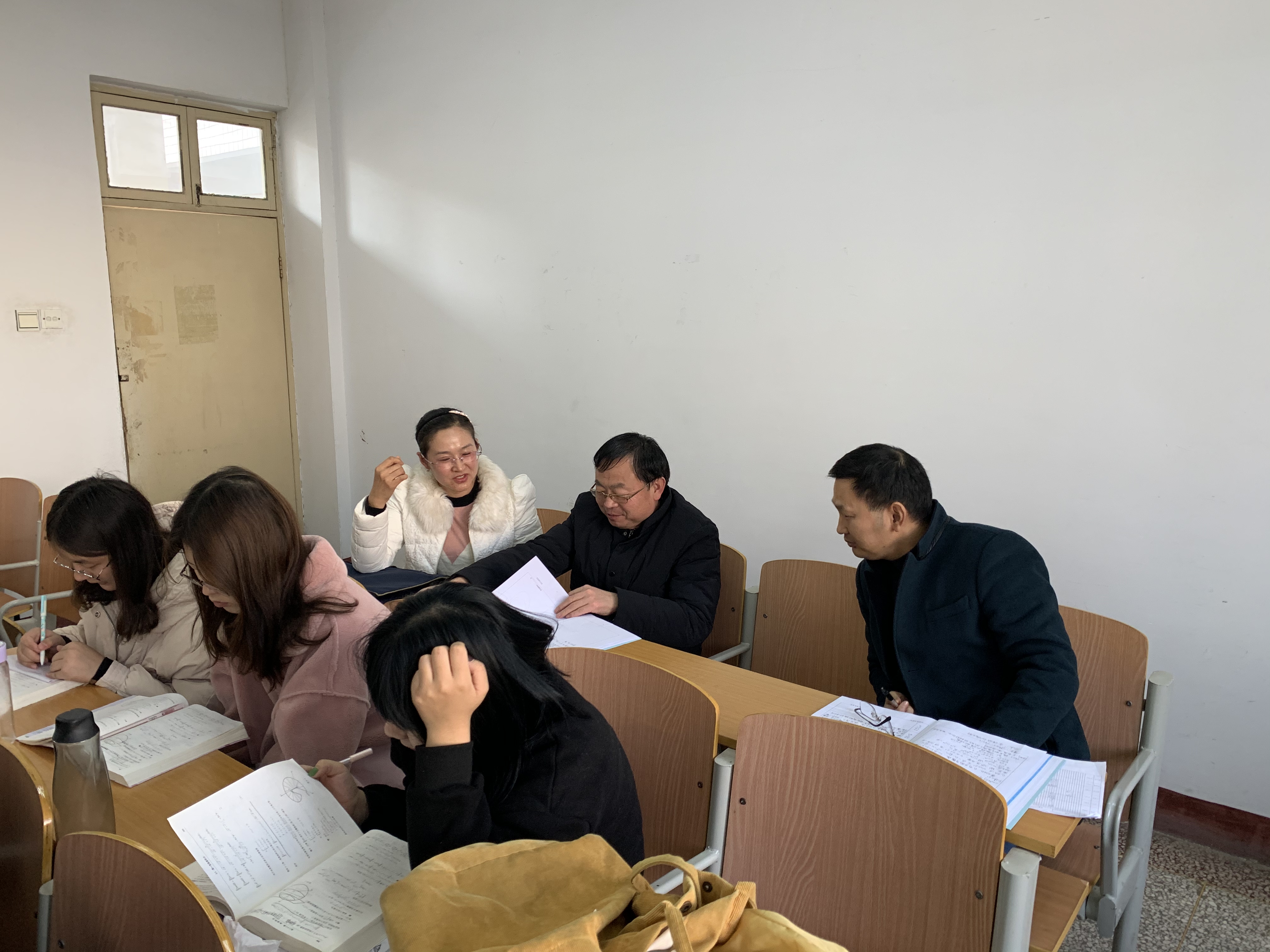 薛明志在文化路校区一号教学楼先后听取了祁先飞博士的《点集拓扑学》和史玉英老师的《数学分析》课程。薛明志一边认真听课一边详细做记录,课后与授课教师就教学问题进行探讨,提出具体指导意见。