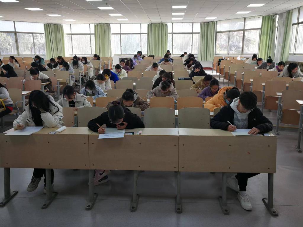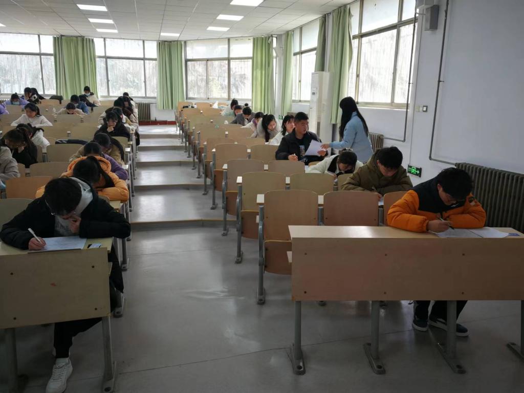 8:45,参赛同学严格遵守考试纪律要求,全程佩戴口罩,持学生证、身份证有序签到入场。监考老师认真核对考生信息,组织考生对号入座。