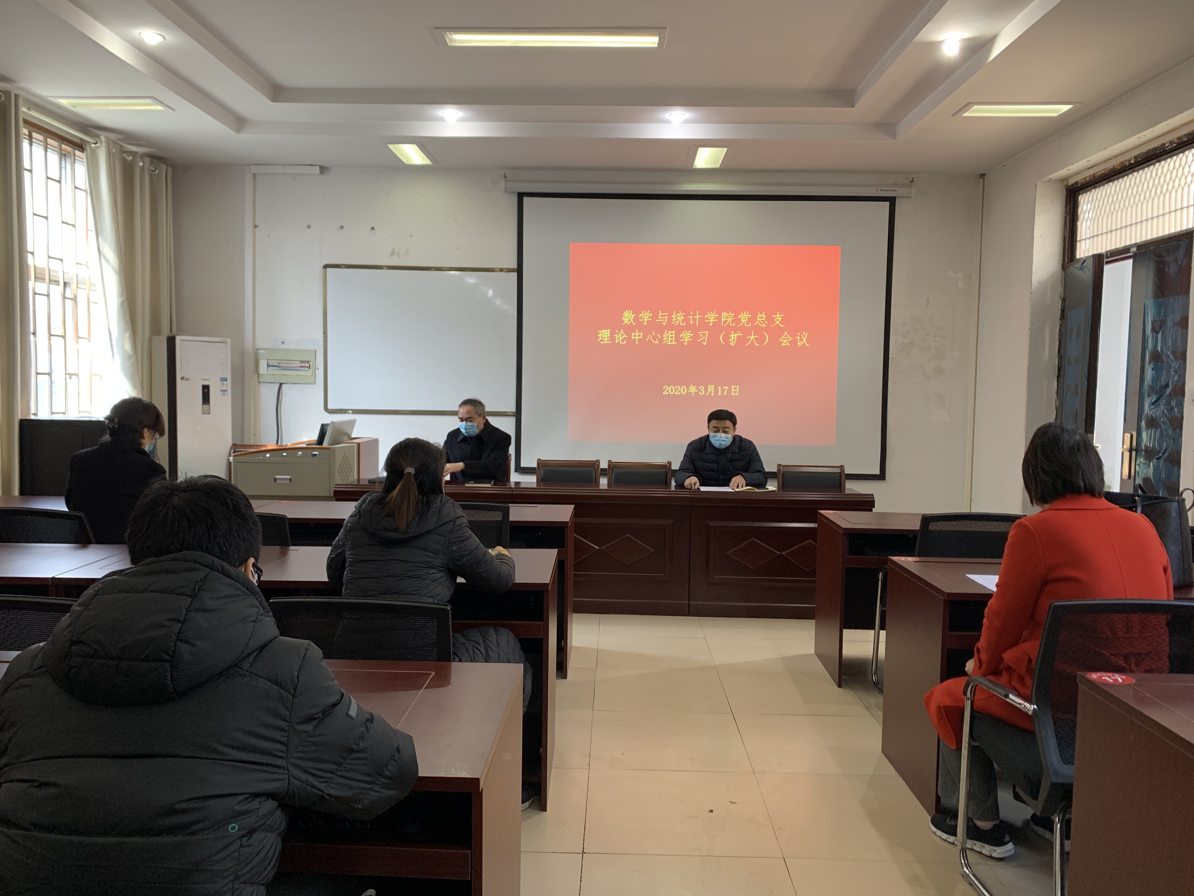2020年3月17日上午,beat365英国官网网站党总支召开了理论中心组学习(扩大)会议,学习习近平总书记给北京大学援鄂医疗队全体“90后”党员的回信和《商丘师范学院新冠肺炎疫情防控网格化管理实施意见》。会议由学院党总支书记陈东主持及领学,学院领导班子、全体辅导员参加了此次会议。