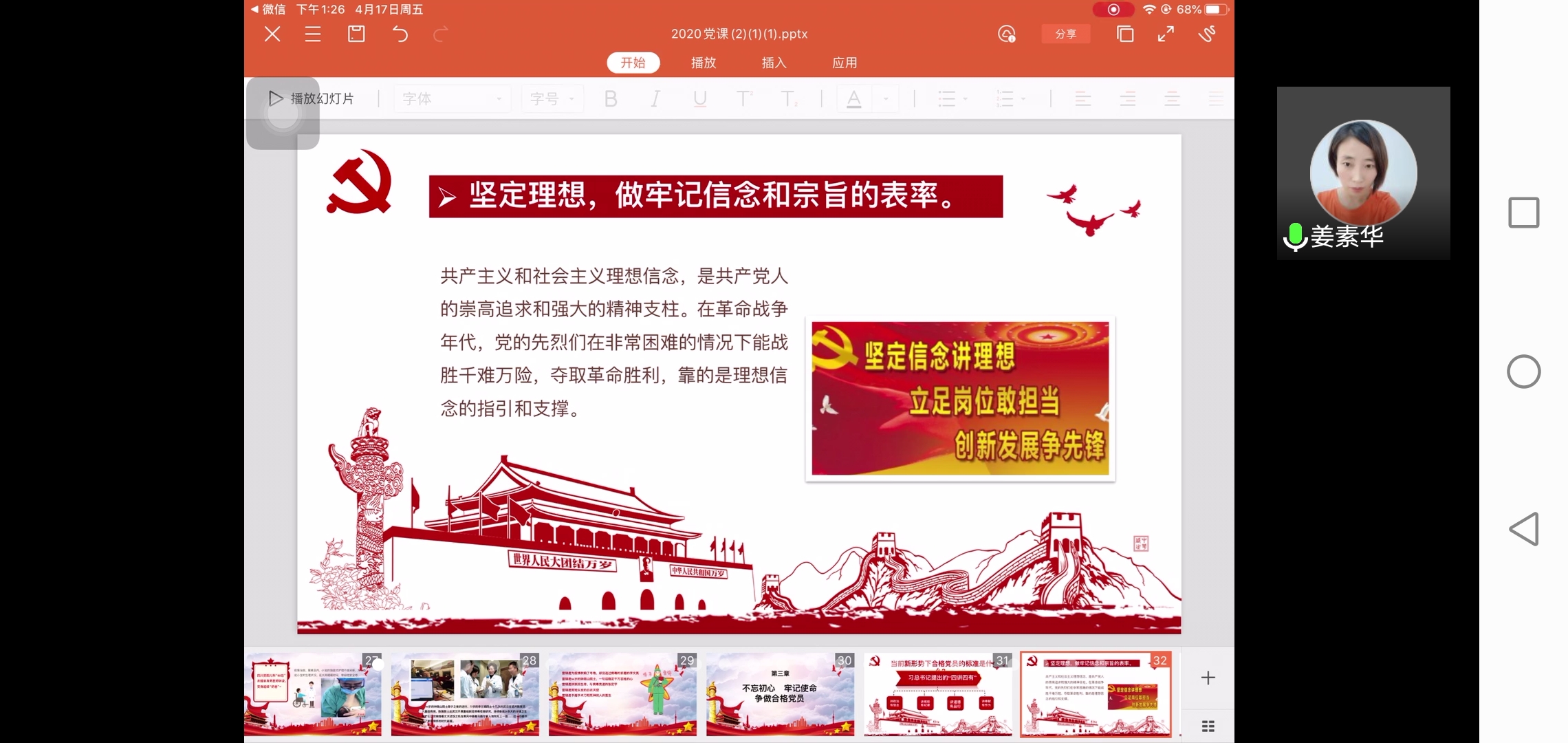 为进一步学习和弘扬雷锋精神,提高党员后备力量的素质修养。beat365英国官网网站于4月17日下午一点召开“抗击疫情,学习雷锋,争做新时代合格党员”主题线上党课培训。此次培训由全体中级入党积极分子参加,团总支书记姜素华主讲。