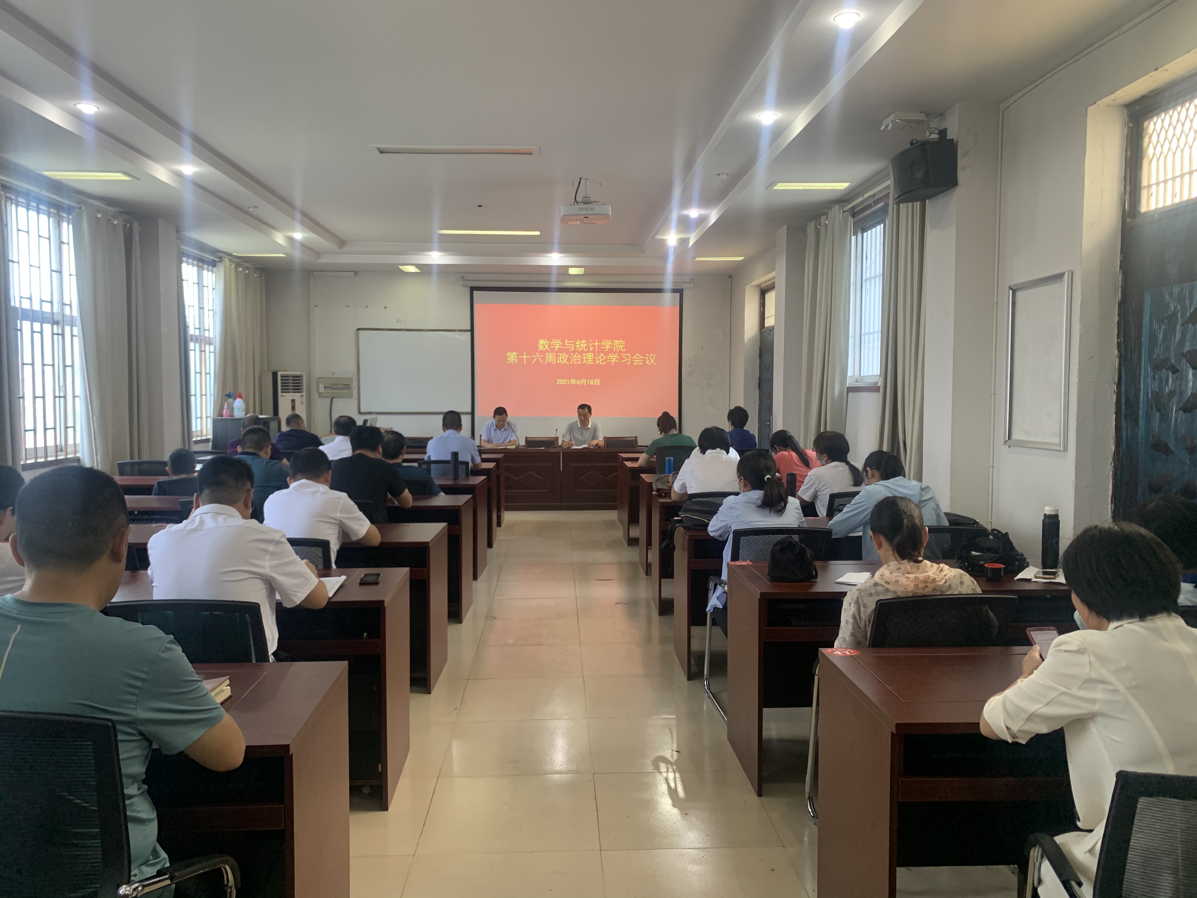 2021年6月18日,根据学校宣传部通知要求,beat365英国官网网站在数学楼综合会议室召开第十六周政治理论学习会议,学院领导班子、全体教职工参加此次会议,会议由院长张斐然主持。