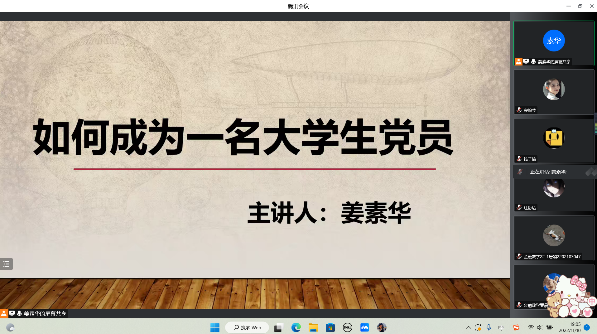 为进一步加强入党积极分子的党性教育,使其明确党员应具备的条件和承担的责任,beat365英国官网网站于10月21日线上召开了“如何成为一名大学生党员”主题党课会议。本次会议由学生第一党支部书记姜素华主持,全体中级入党积极分子参加。