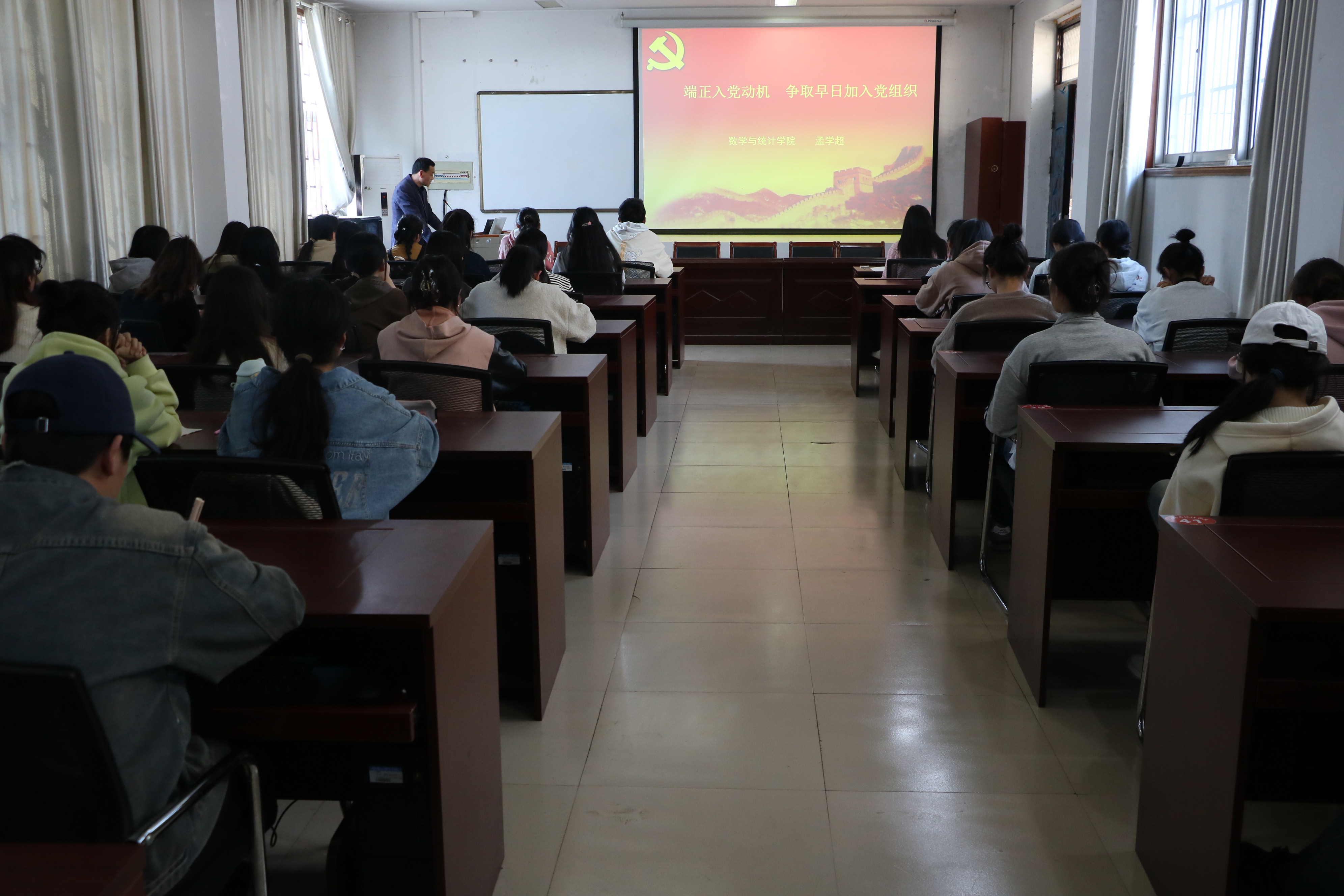 为切实做好入党积极分子的培养教育,确保新党员发展的质量。根据学校党委组织部的工作部署,3月29日,beat365英国官网网站分党校在数学办公楼208教室开展了以“端正入党动机,争取早日加入党组织”为主题的党课培训。本次党课由党委书记孟学超主讲,全体中级入党积极分子参加。