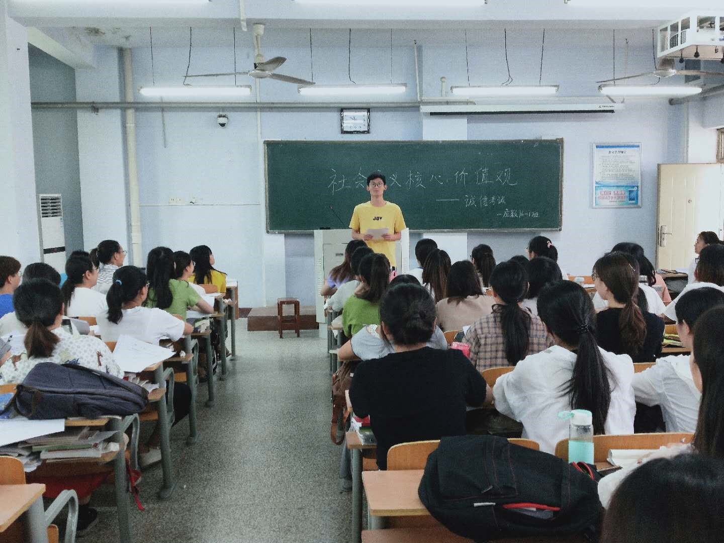班会伊始,各年级辅导员首先讲述了诚信考试的意义、重要性及考试作弊的严重后果,并积极引导同学们树立正确的考试观,同时每个班级还签订了诚信考试承诺书,用实际行动践行社会主义核心价值观,树立新时代大学生的良好形象。班会最后,各班班长带领同学进行了考试宣誓仪式,并表示一定会践行社会主义核心价值观,诚信考试,杜绝作弊,考出自己真本领。