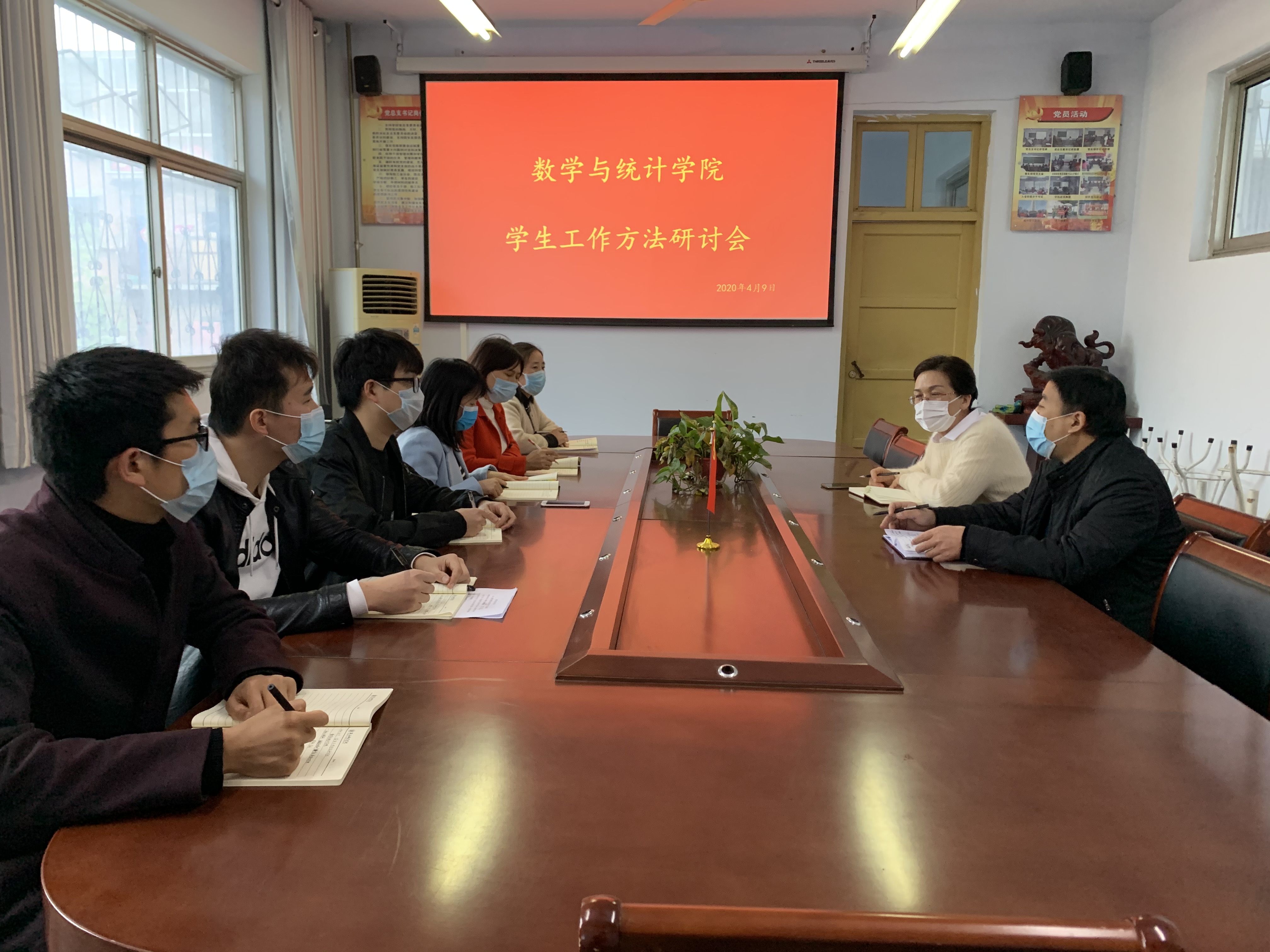 2020年4月9日下午,为贯彻落实校党委副书记朱伟调研指导beat365英国官网网站学生工作队伍座谈会讲话精神,beat365官网学工队伍在数学楼党建活动室召开学生工作方法专题研讨会,学院党总支书记陈东、院长梁洪亮、副书记陈树艳与全体辅导员参加了此次会议,会议由党总支副书记陈树艳主持。
