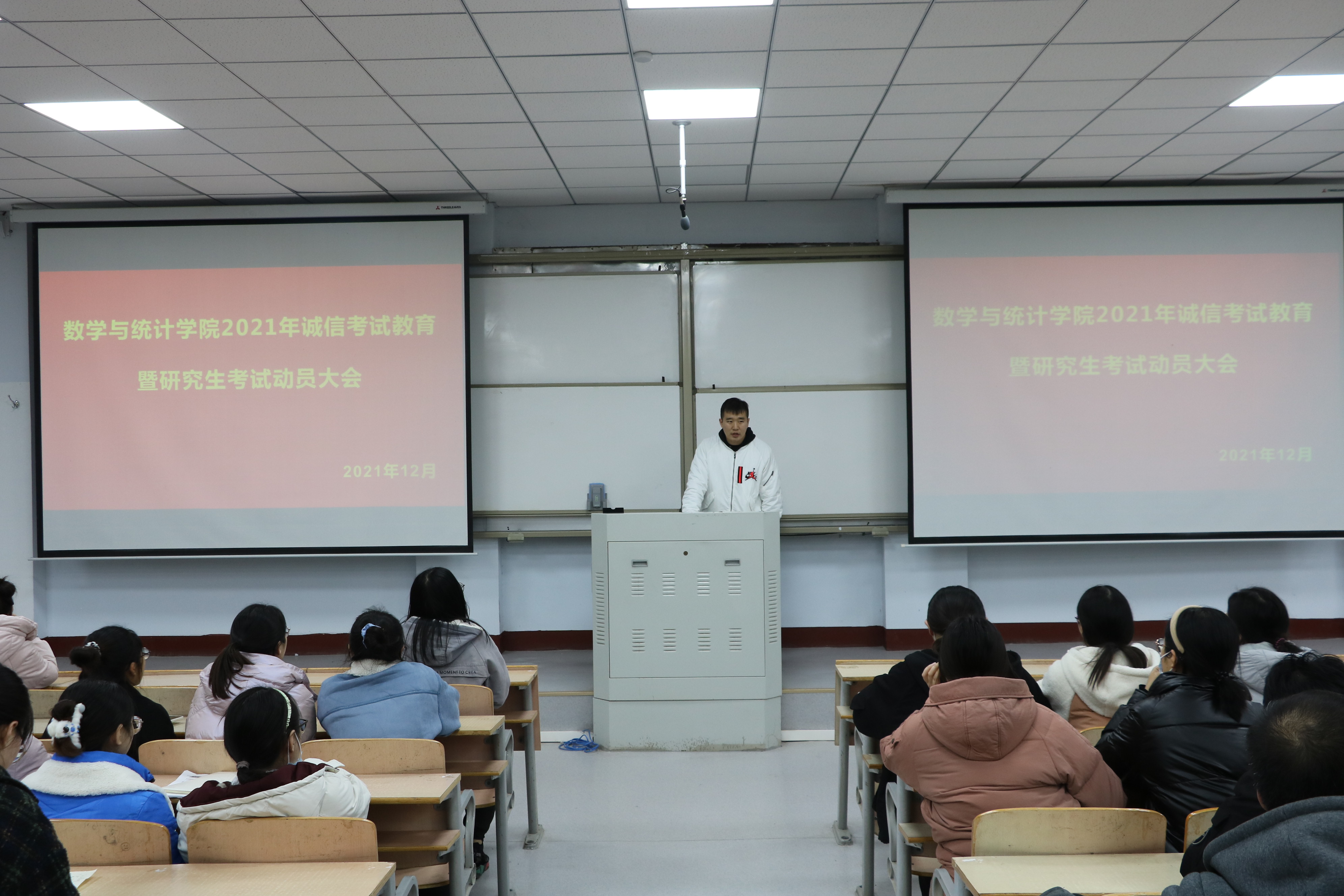 为号召参加研究生考试的同学诚信应考,增强考试信心和底气,提升考研士气,beat365英国官网网站于12月23日下午六点半在一号教学楼106教室开展了诚信考试教育暨研究生考试动员大会。本次会议由18级辅导员李昊阳老师主持,全体考研学生参加。