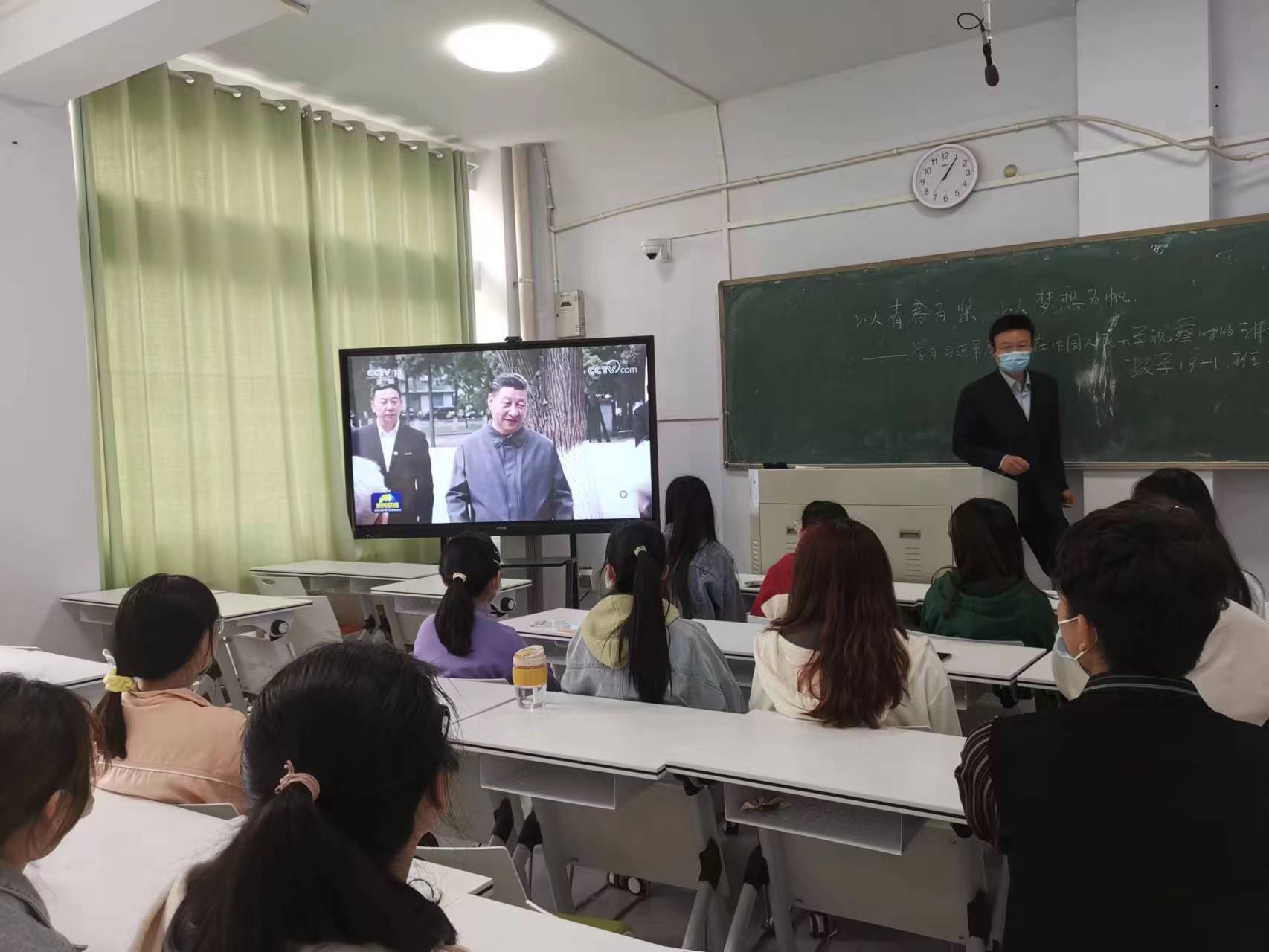 在五四青年节即将到来之际,习近平总书记到中国人民大学考察调研并发表重要讲话,充分体现了对教育工作的高度重视、对广大青年的殷切期望。主题班会上,班主任领学了习近平总书记考察中国人民大学时重要讲话,播放了习近平总书记在中国人民大学走访的相关新闻视频材料,并结合班级实际情况,围绕理想信念教育、爱国主义教育等方面鼓励学生们牢记总书记教诲,立志复兴,不负韶华。
