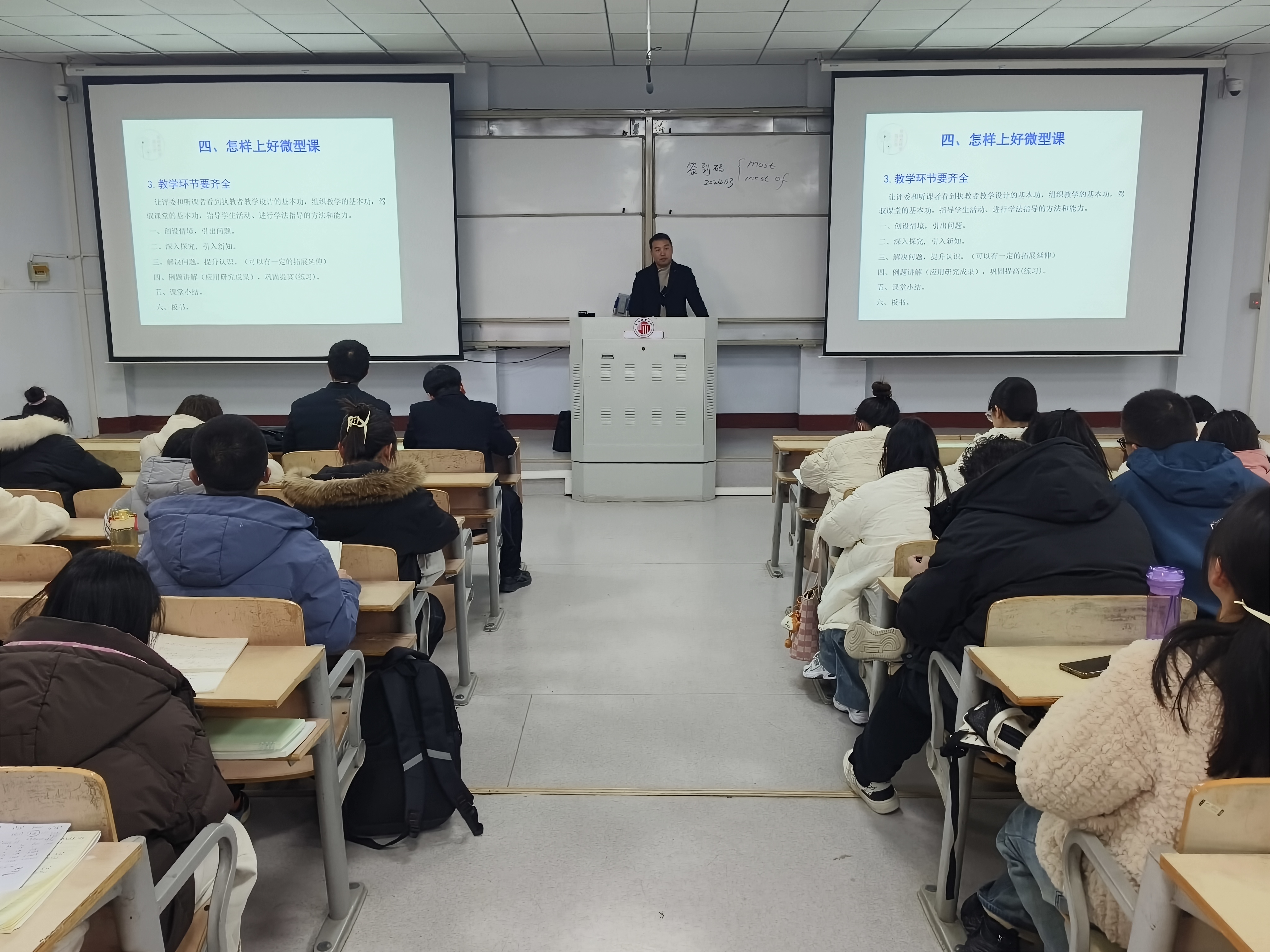 为进一步提升师范生的教学技能,为他们未来的职业发展奠定坚实的基础,beat365英国官网网站于3月8日下午2点30分在睢阳校区一号教学楼208教室成功举办了“互联网+”中学数学师范生教学技能培训工作坊第三次集中培训——“怎样上好微型课”。此次培训由商丘市基础教研室数学教研员范兴达老师主讲。坊主吕本旭、杨朝辉、beat365英国官网网站副院长任磊、数学应用数学系主任司红颖和2021级133名坊员参加了此次集中培训。