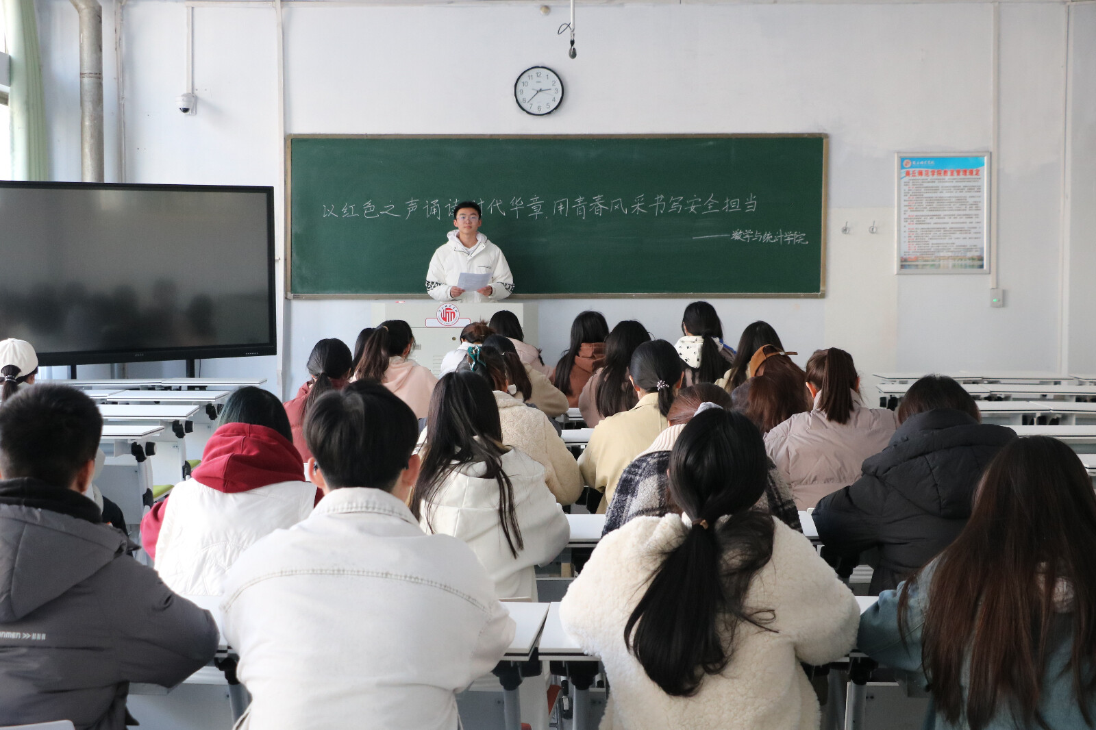 为强化政治引领,提升大学生的政治素养,结合学校“安全文明卫生月”活动内容,beat365英国官网网站于3月16日在睢阳校区一号教学楼108教室举办了以“以红色之声诵读时代华章,用青春风采书写安全担当”为主题的红色朗诵活动。本次活动由学生会程致远主持,beat365英国官网网站学生代表参加。